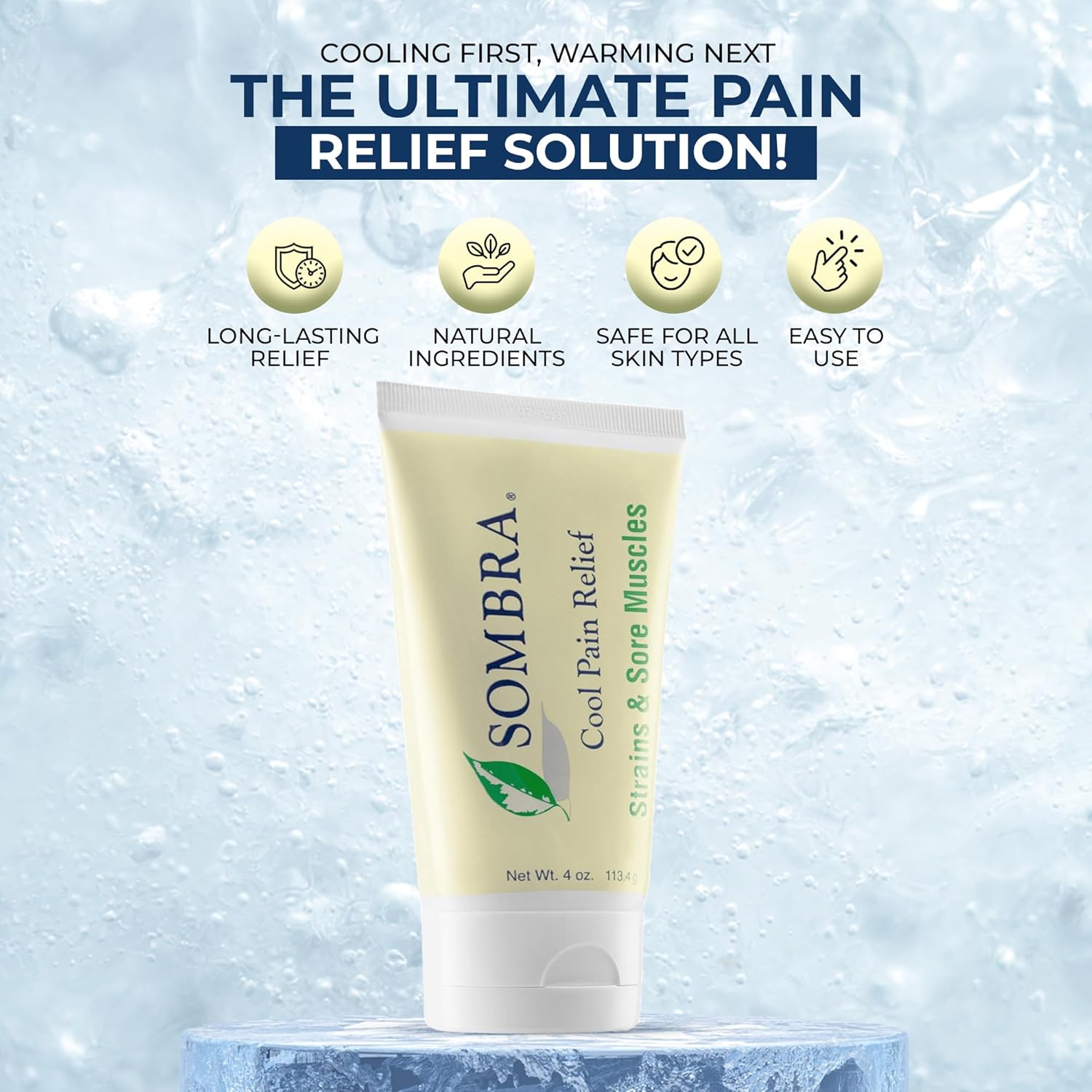 Sombra Cool Pain Relief Gel Cold Pain Relief for Swelling, Growing Pains, Soreness, Post-Workout, Vegan Formula Free of Artificial Fragrances, Dyes, NSAID, Wax, Petroleum, Alcohol - 3oz Flip-Top Tube