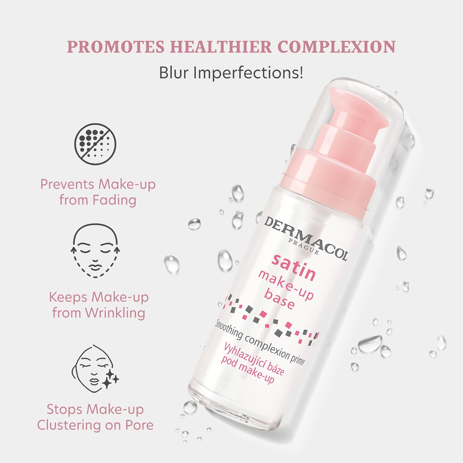 Dermacol - Satin Makeup Base, Matte Face Primer for Wrinkles and Pores, Transparent Makeup Primer for Oily Skin & Dry and Combination Skin, Easy to Blend Pore Filling Primer, No Preservatives, 30 mL
