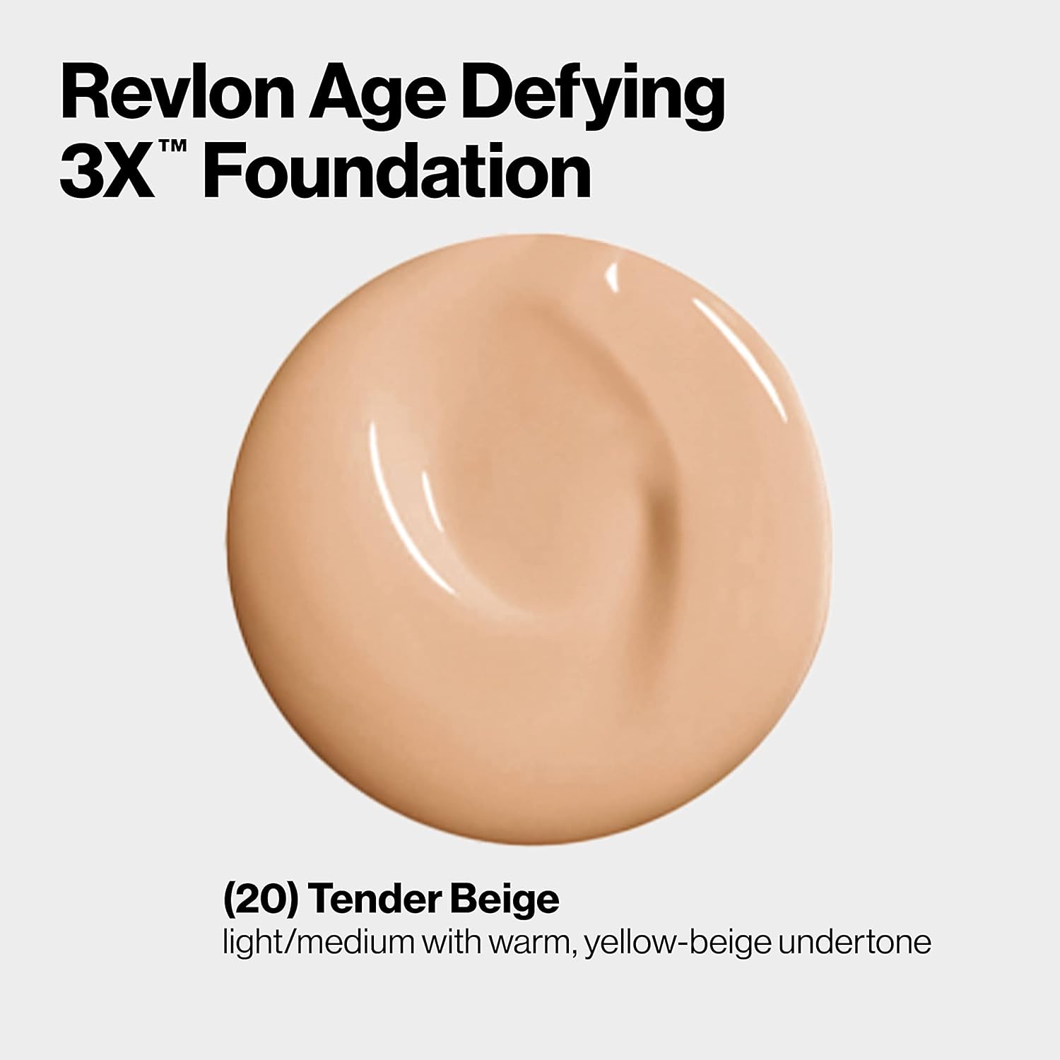 Revlon Age Defying 3X Makeup Foundation, Firming, Lifting and Anti-Aging Medium, Buildable Coverage with Natural Finish SPF 20, 020 Tender Beige, 1 fl oz
