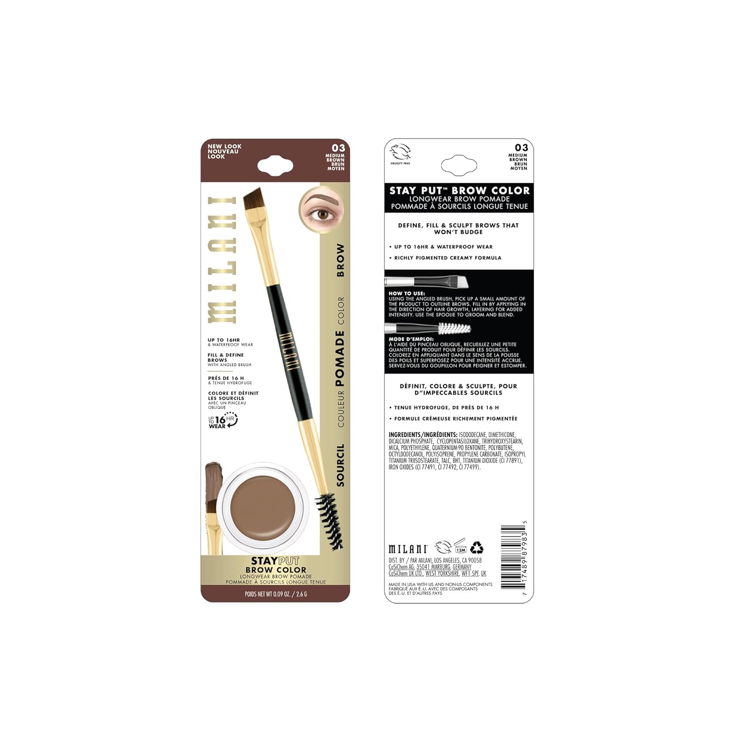 Milani Stay Put Brow Color - Medium Brown (0.09 Ounce) Vegan, Cruelty-Free Eyebrow Color that Fills and Shapes Brows…