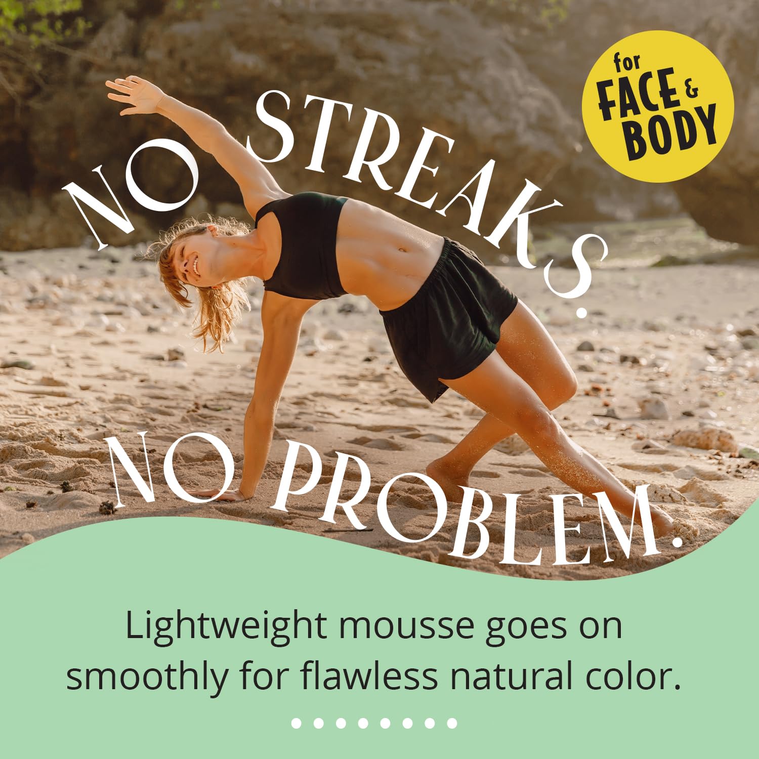- Streak-Free Self Tan: Forget about streaks, blotches, unevenness, or orangey tones common with other self tanners; this tanning mousse is light, quick-drying and provides a natural tan every time; A rich brown tint highlights where it’s been applied