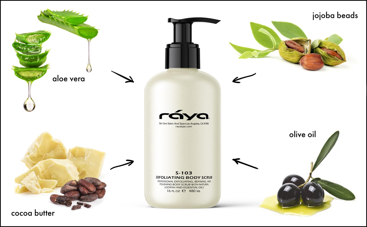 RAYA Exfoliating Body Scrub 16 oz (S-103) | Exfoliating, Refining, and Polishing Body Scrub | Made with Natural Loofah and Essential Oils | Relieves Ingrown Hairs