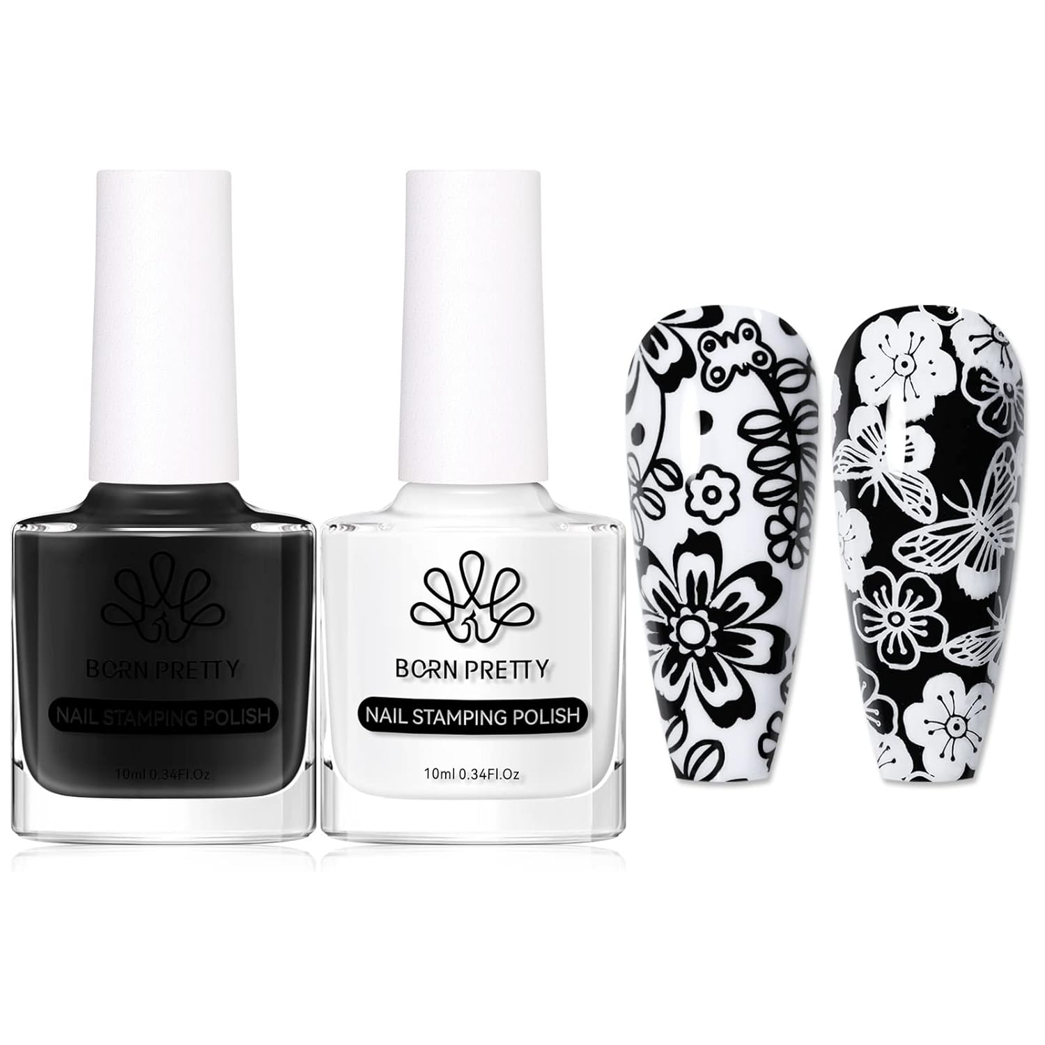 Born Pretty Nail Art Stamping Polish White Black Manicure Image Stamp Polish Set Print Polish Varnish 2 Bottles