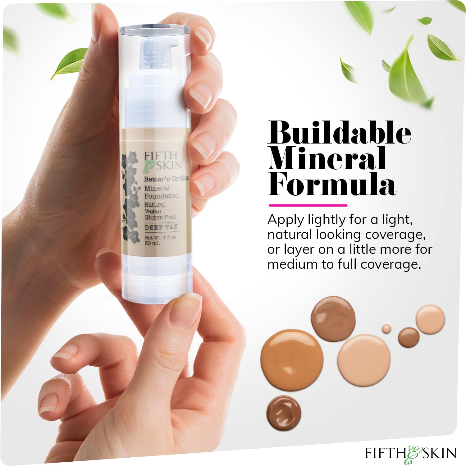 Fifth & Skin: Better’n Ur Skin Liquid Foundation (DEEP TAN) - Natural, Organic, Vegan, Cruelty-Free - Gluten-Free Beauty with Buildable Coverage and Palm-Free Luxury - 1 oz