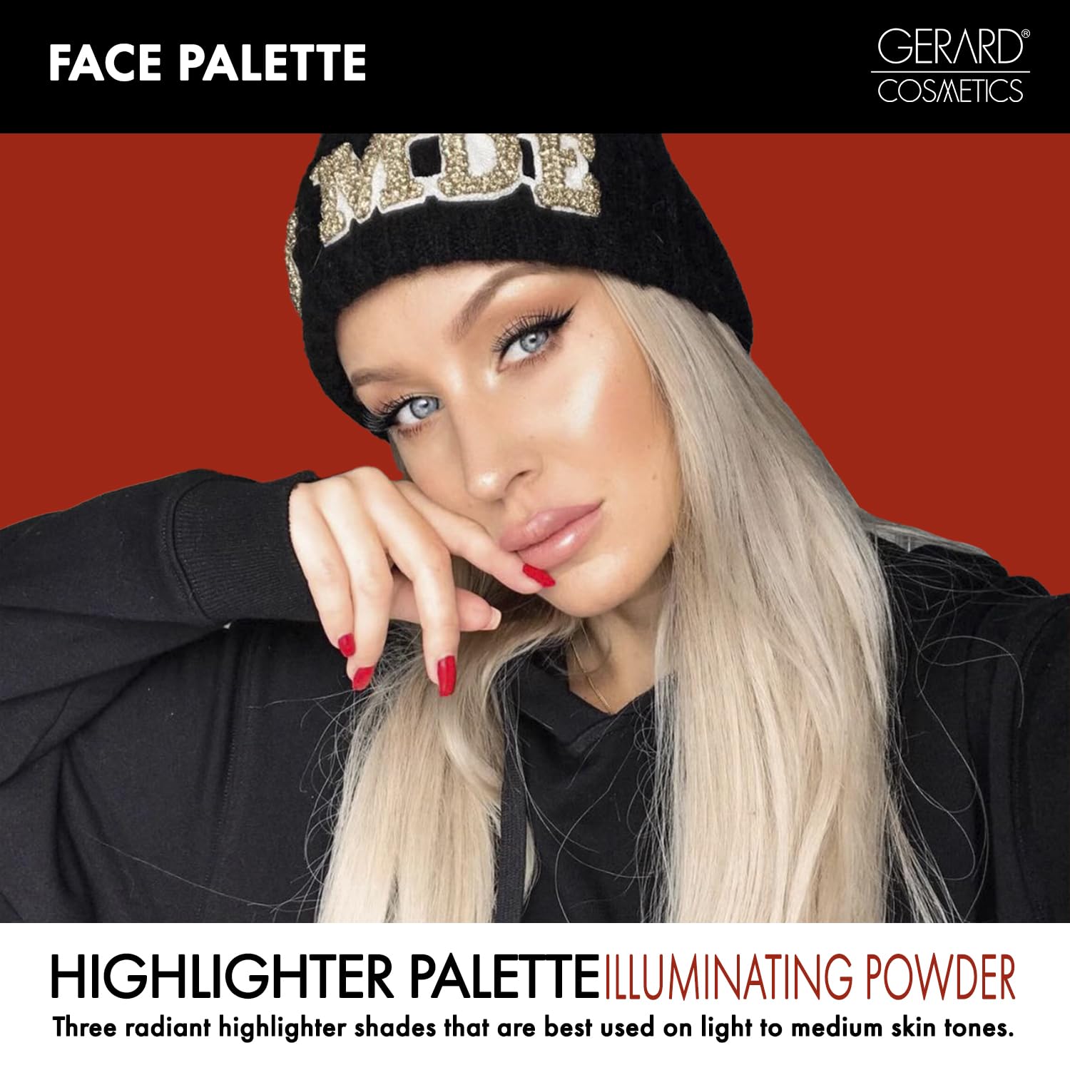 Makeup Highlighter Palette Trio (Starstruck) by Gerard Cosmetics | Vegan Powder Highlighter Makeup Palette with Three Luminous Shades | Cruelty Free and Made in the USA