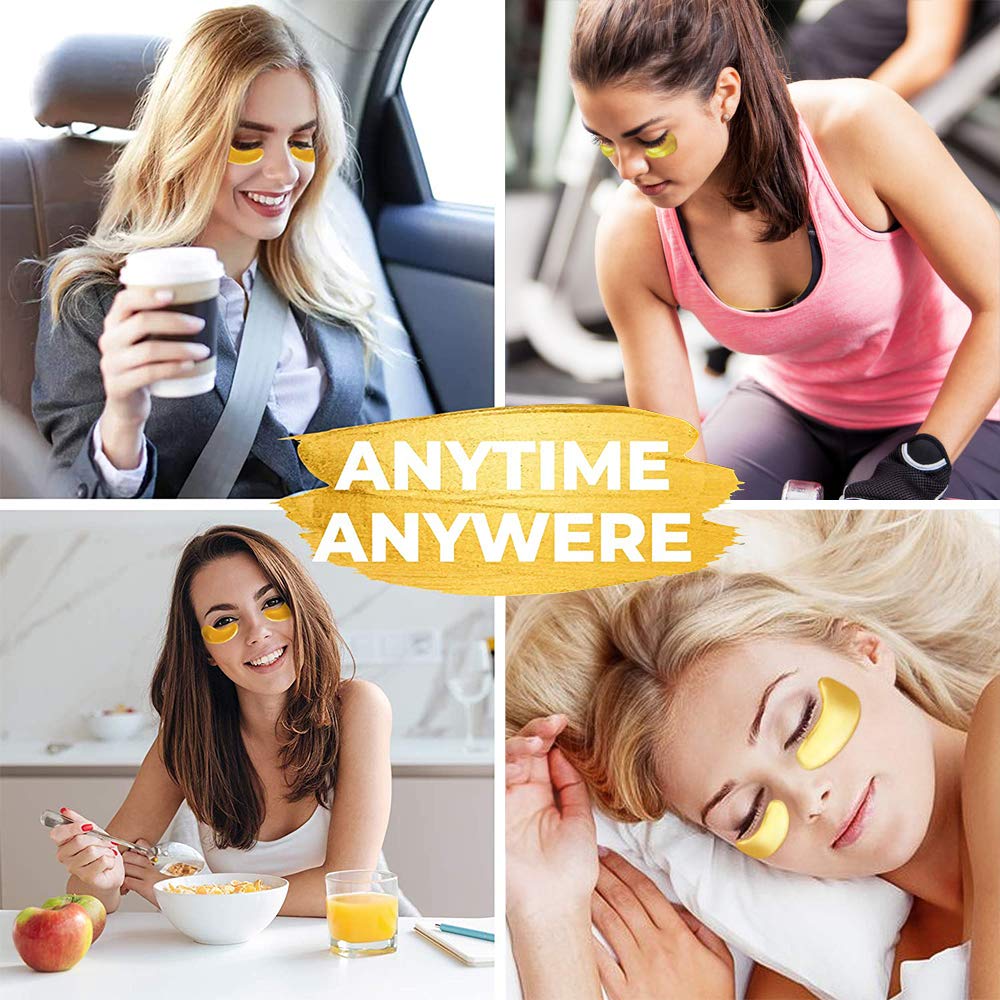 Vandarllin24K Gold Powder Gel Collagen Eye Masks Sheet Patch, Remove Bags,Dark Circles &Puffiness,Reduce Wrinkle,Moisturising,Hydrating for Blackheads (60Pairs)