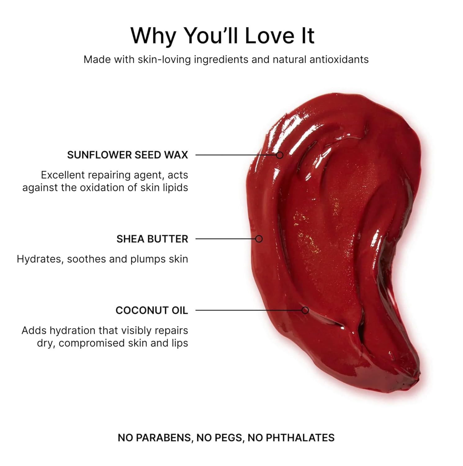 - SKIN LOVING. Loaded with skin loving ingredients such as organic sunflower seed oil, organic coconut oil, nourishing shea butter, and natural antioxidants. Made without parabens, sulfates, phthalates, petrochemicals, and GMOs. Clean Beauty.