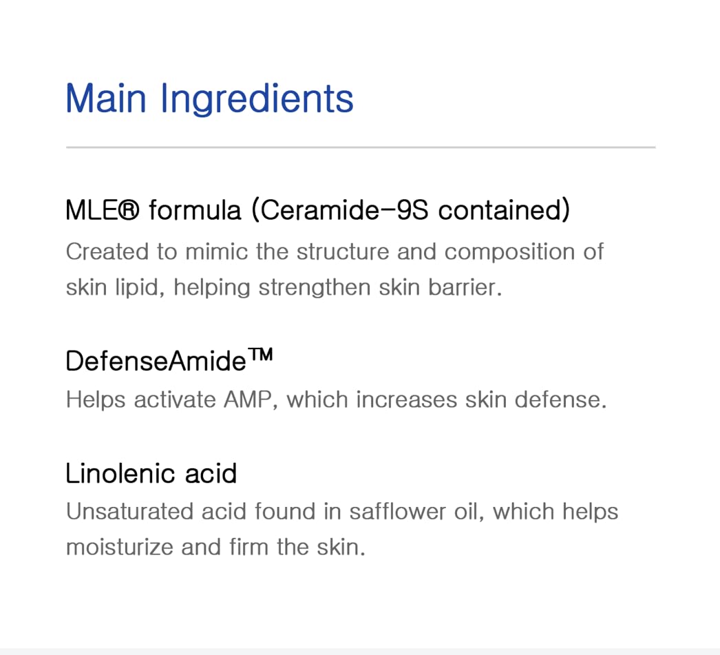- Active Ingredients : Water, Glycerin, Propanediol, Caprylic/capric triglyceride, Cetearyl alcohol, Sorbitan stearate, Carthamus Tinctorius (safflower) seed oil, Glyceryl stearate, Stearic acid, Myristoyl/palmitoyl oxostearamide/arachamide MEA(Ceramide), Methyl caprooyl tyrosinate(Defensamide), Phytosterols, Tocopheryl acetate, Bisabolol, Xanthan gum, Sodium hyaluronate, Dimethicone, 1,2-hexanediol, Caprylyl glycol, Tropolone Water, Glycerin, Propanediol, Caprylic/capric triglyceride, Cetearyl alcohol, Sorbitan stearate, Carthamus Tinctorius (safflower) seed oil, Glyceryl stearate, Stearic acid, Myristoyl/palmitoyl oxostearamide/arachamide MEA… See more