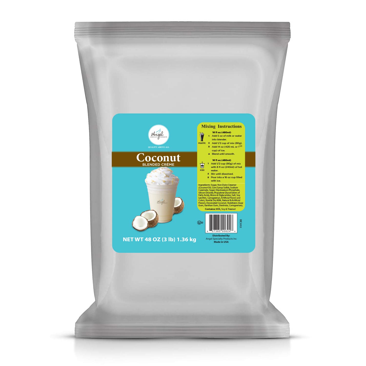 - QUICK & EASY: Make perfect Coconut flavored drinks everytime! Just add water or milk. Serve hot, iced, or as a blended frappe! Angel 3-in-1 instant beverage mixes & blends are ideal for use in home kitchens, office kitchens, cafés, coffeeshops, boba/bubble tea shops & restaurants. Easy to mix & serve, Angel mixes, blended frappes, & smoothie bases make beverage blending simple.