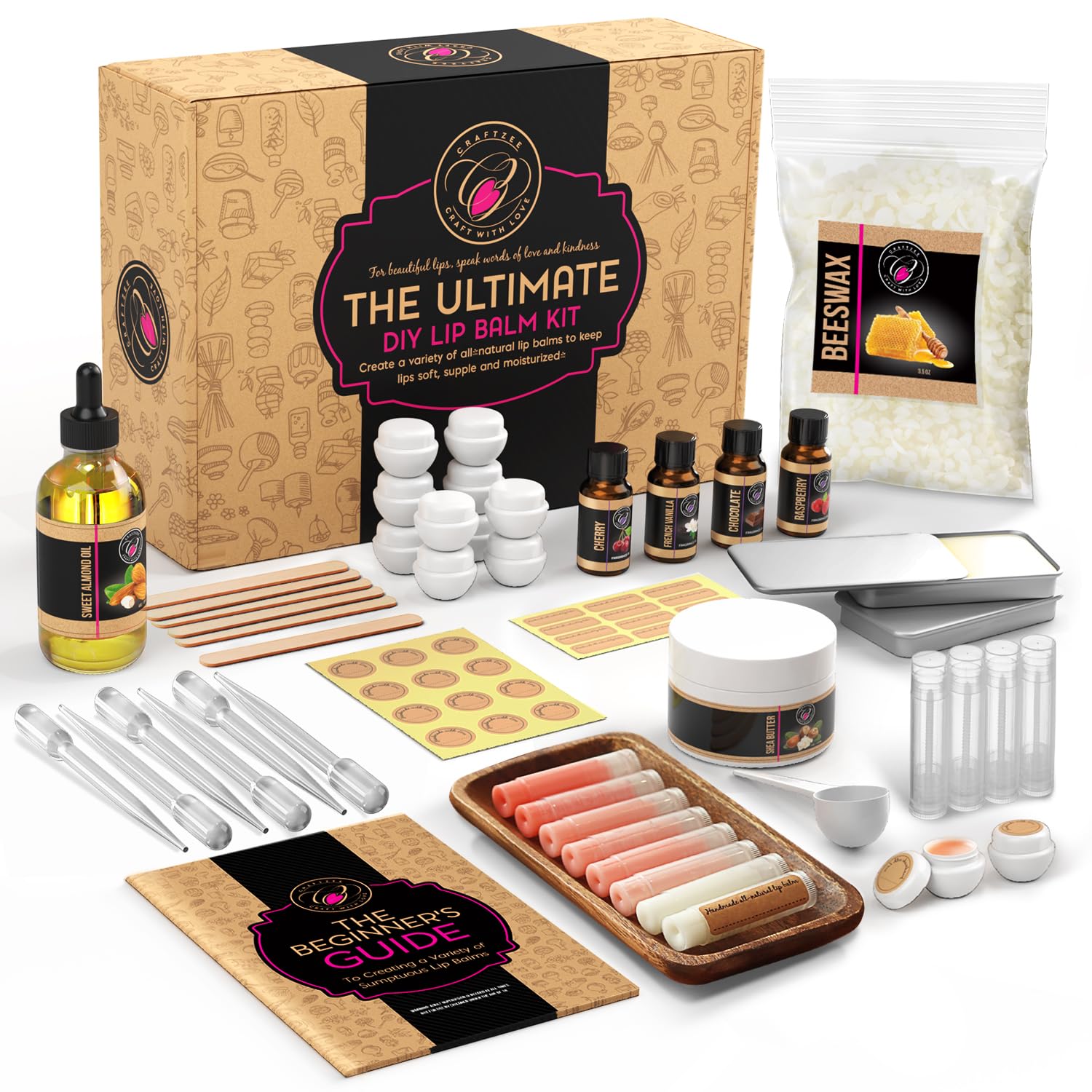 - [ NATURAL LIP BALM HYDRATING, LIP MOISTURIZER FOR WOMEN & MEN ] Craft your own nourishing, natural lip gloss using non toxic, skin-loving ingredients. These ingredients absorb quickly to leave lips soft and hydrated all day - perfect for sensitive skin. Create your own lip balm set in fun flavors, or make a soothing lip balm for kids. A favorite among adult craft kits and diy crafts for adults, it includes all you need to blend, pour, and store in your own lip balm containers empty tubes. Customize scents, colors, and consistencies for a non toxic lip balm that feels as good as it looks.