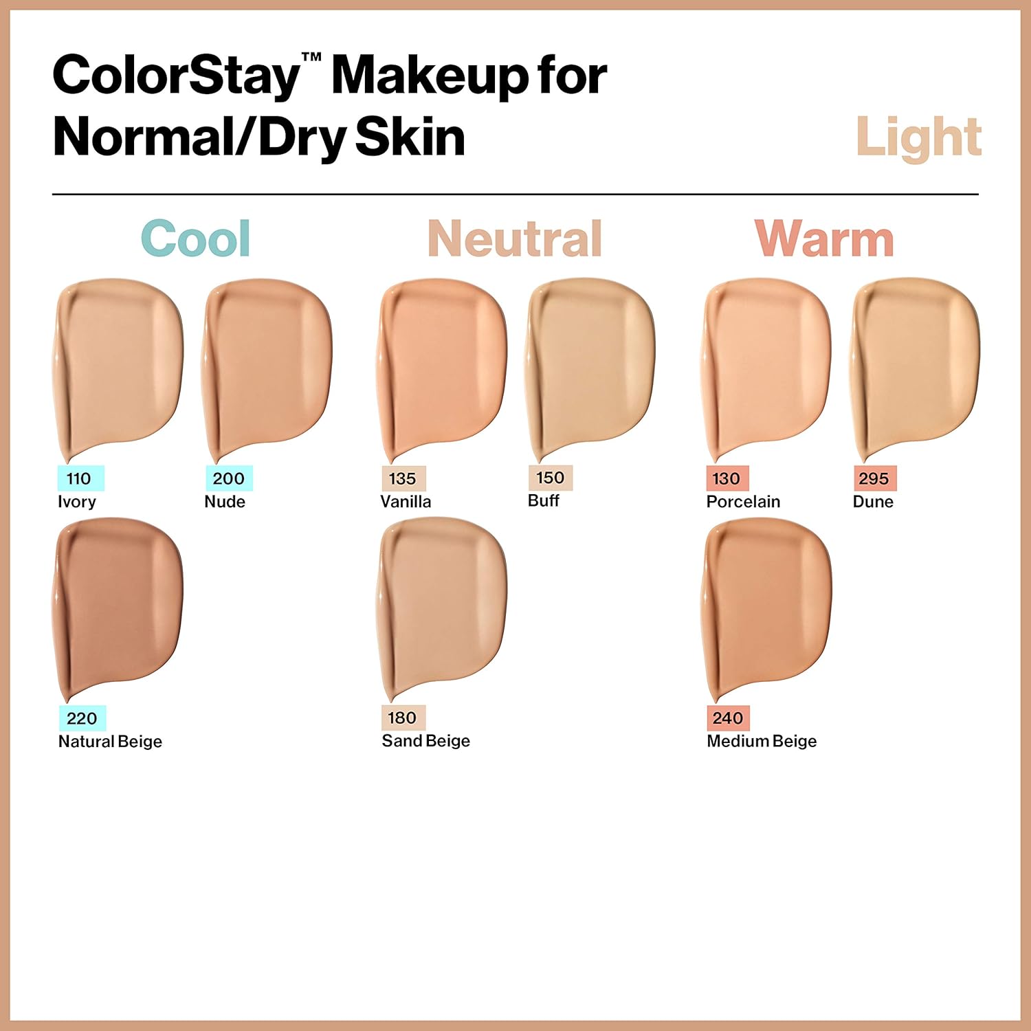 Revlon Liquid Foundation, ColorStay Face Makeup for Normal & Dry Skin, SPF 20, Longwear Medium-Full Coverage with Natural Finish, Oil Free, 500 Walnut, 1 Fl Oz