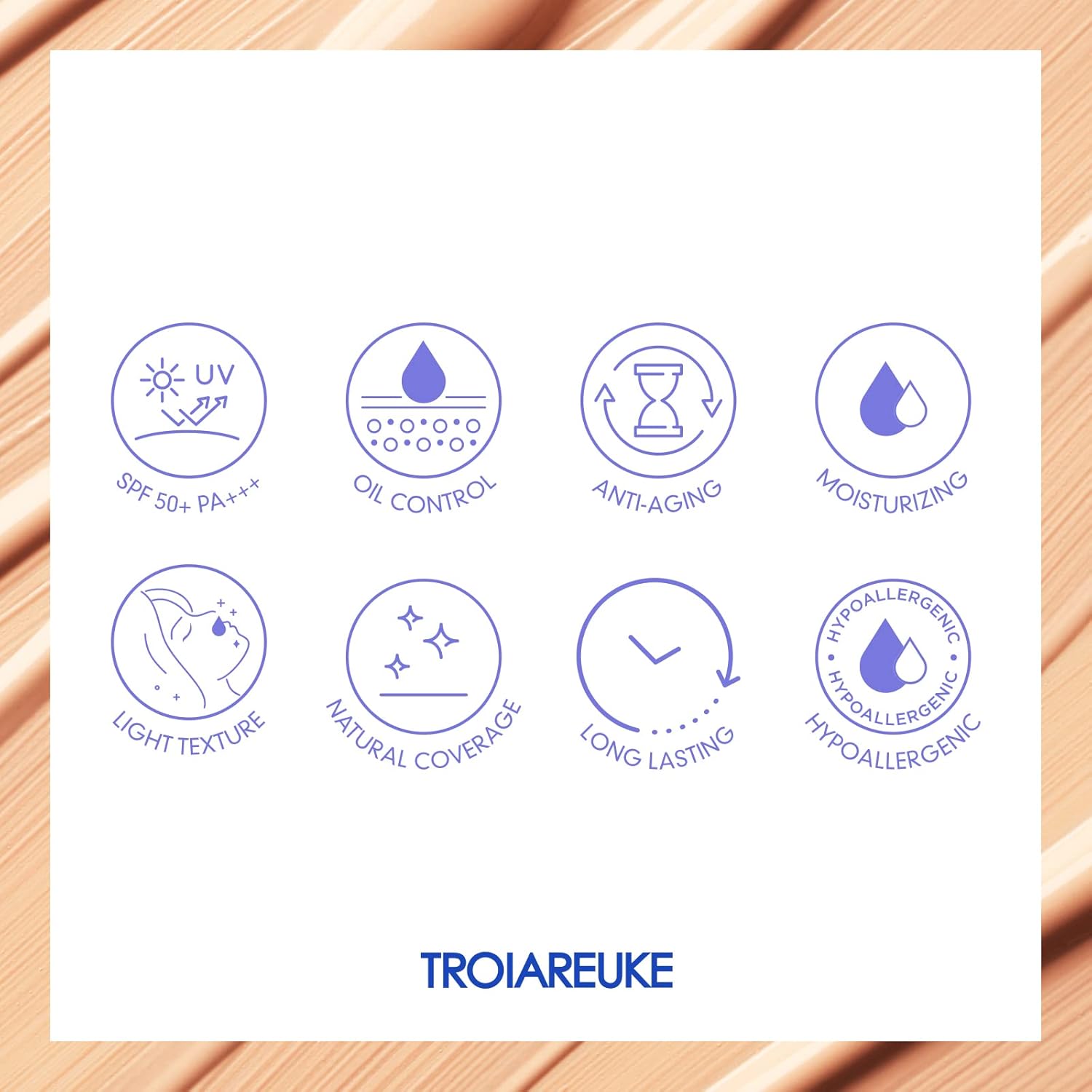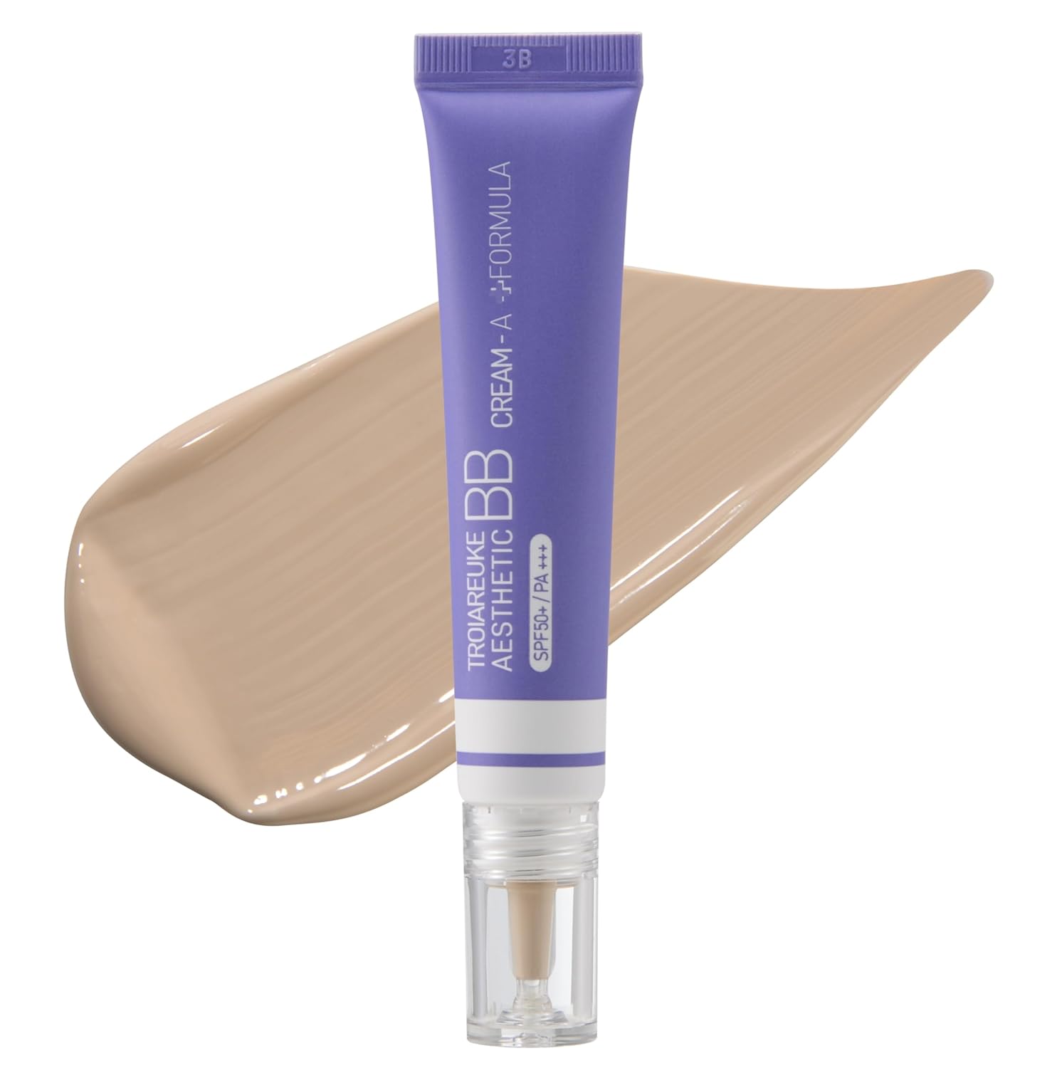 TROIAREUKE Aesthetic BB Cream A+ Formula (21 Beige) SPF50+ PA+++, Lightweight Blemish Balm, Tinted Moisturizer with Medium Coverage, Lasting Foundation Makeup Base for Oily Skin | Korean Beauty Makeup