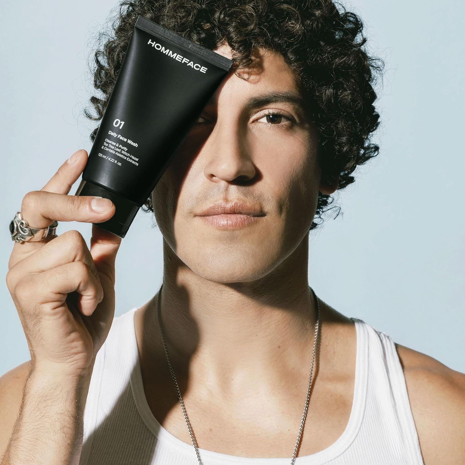 HommeFace Daily Face Wash for Men, 4.22 Fl. Oz. Gentle Facial Cleanser for Deep Cleansing & Purifying with Collagen, Witch Hazel & Cica Extracts, Vegan