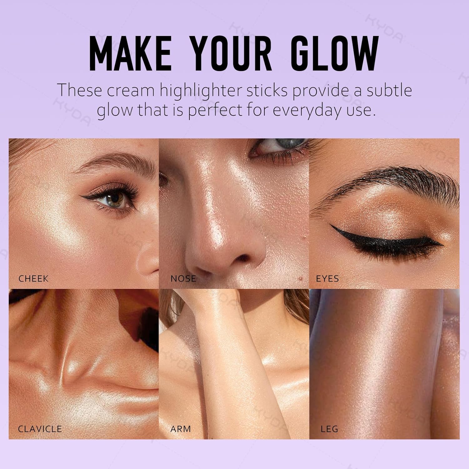 - 【Makeup Highlighter Stick】Creamy texture and radiant glow finish, feel beautiful on your skin and they gave off the most radiant most amazing highlight ever. These cream highlighter sticks provide a subtle glow that is perfect for everyday use.