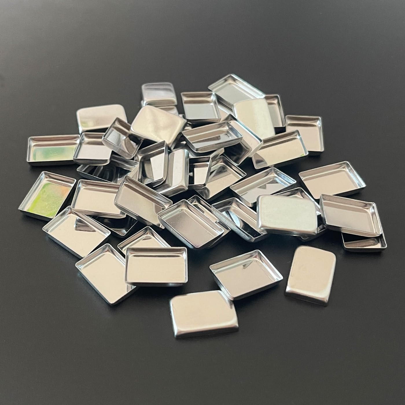 FCLUB 100Pack Empty Eyeshadow Metal Pans Cosmetic Eyeshadow Blush Lipstick Organizer for Makeup Pressed Powders (0.8 inch) Tiny and Shallow