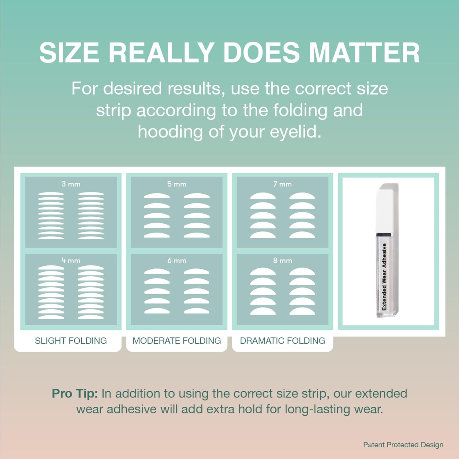 - Contours Rx Quality - Lids by Design eyelid tape ranges from a subtle 8mm size to a more dramatic 8mm size in the look and definition of your eyelids. Correcting eyelid correcting strips include 80 strips, a months supply of relief from heavy hooding, excess skin, and tired looking eyes. Each set comes with tweezers for a fast and smooth application.