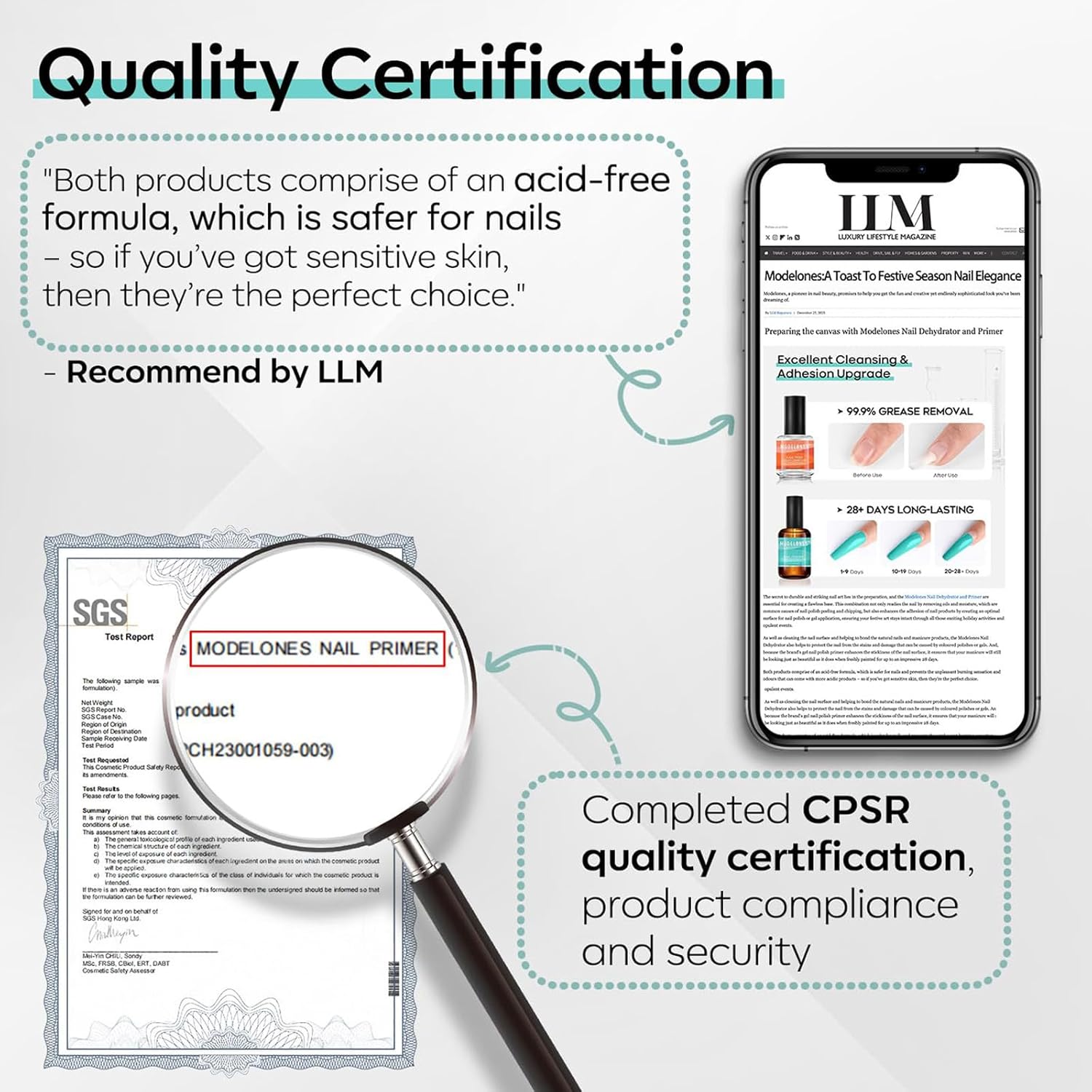 modelones Nail Dehydrator, 15 ml Acid Free Nail Prep Dehydrator for Press Ons/Acrylic Nails/Gel Nail Polish, Hema-Free Primer Bonder