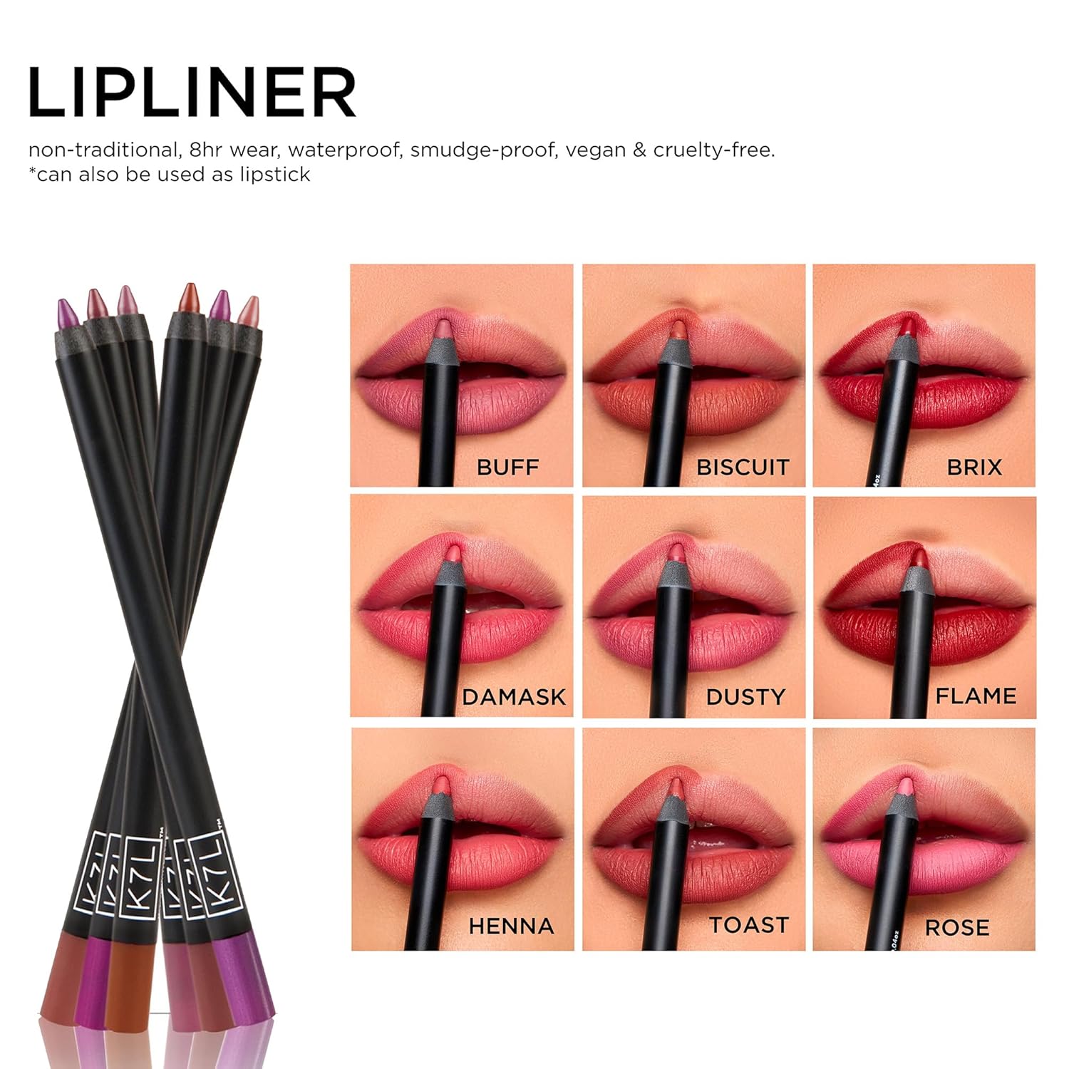 - FULL COVERAGE ALL DAY LONG: Define your pout and prevent your lipstick from running with our matte waterproof lip liner! Keep your favourite lipstick or gloss in check throughout the day with a full coverage formula that doesn’t budge.