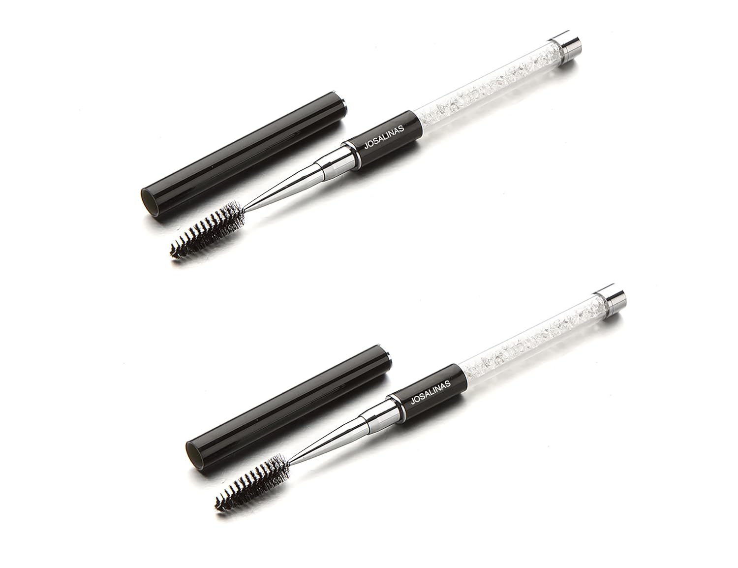 2PCS Mascara Brushes, Eyebrow Eyelash Brushes, Mascara Wands Spooly Applicators, Eye Brushes, Portable Cosmetic Brushes with Cap Spoolies Brushes for Eyelash Extensions and Eyebrows, Black