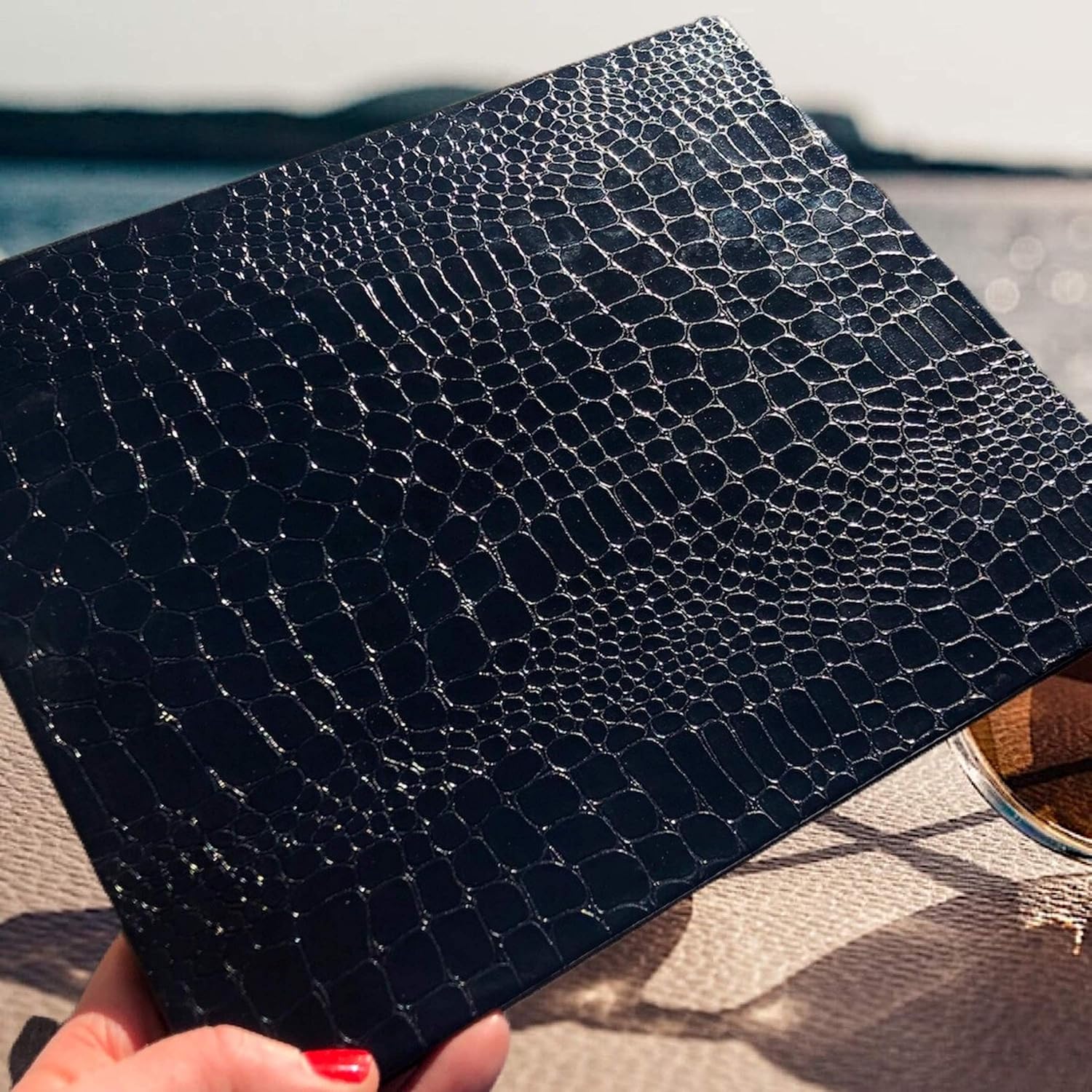 - Made of premium faux leather with croc pattern and MINIMAL branding
