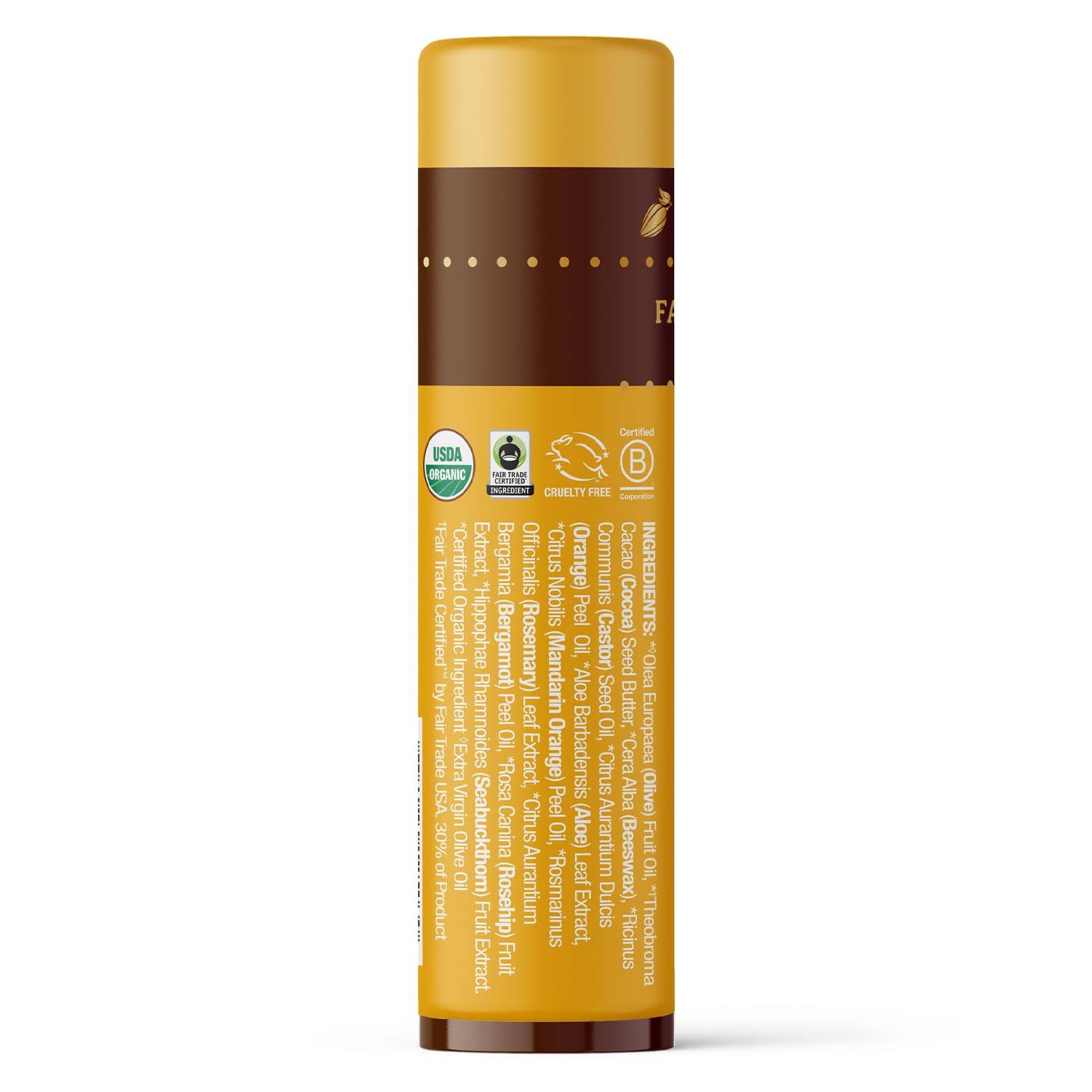 - ALL NATURAL ORANGE LIP BALM: Organic essential oils of orange, mandarin & bergamot bring a citrusy scent over sultry cocoa butter undertones, a great pair. No artificial flavors or sweeteners