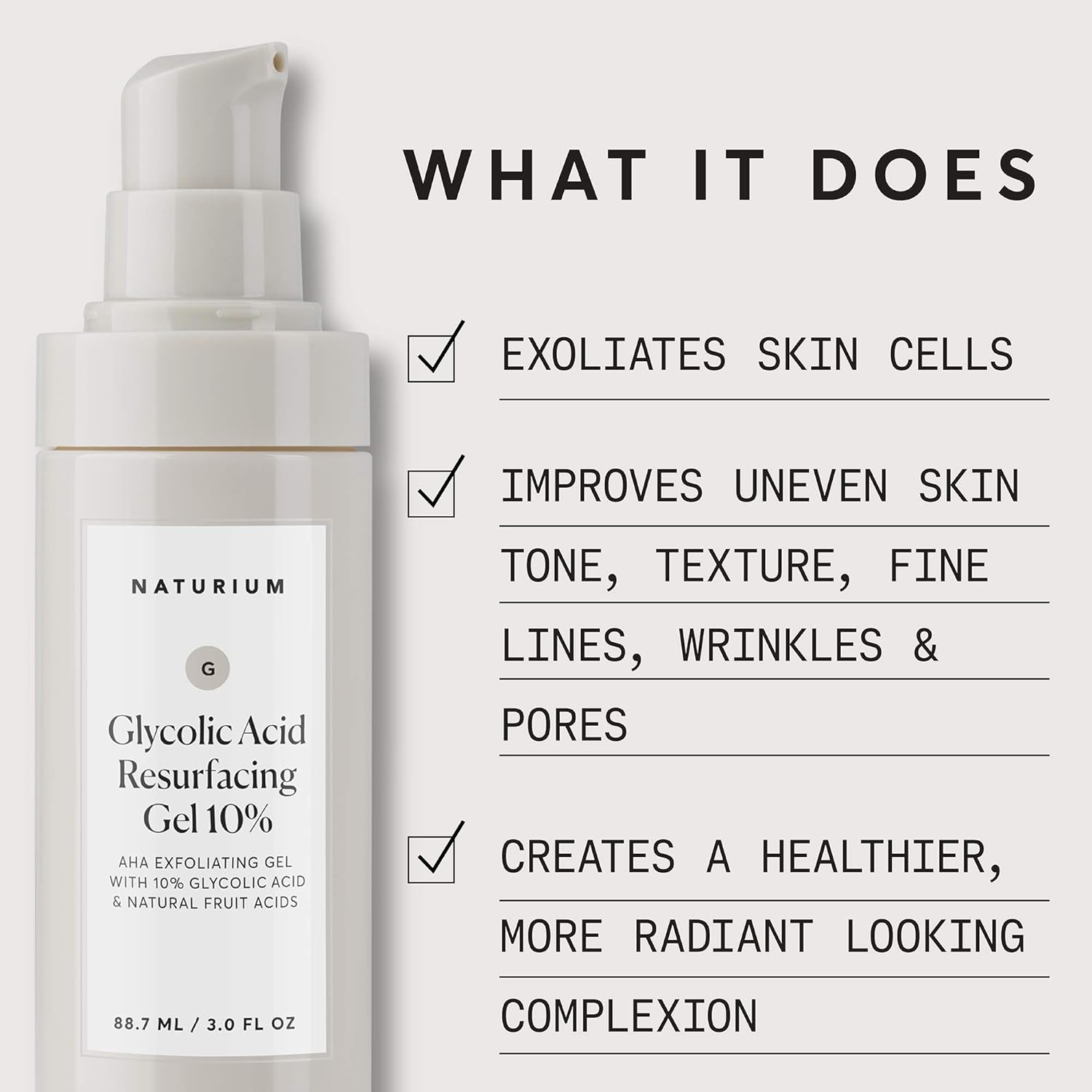 Naturium Glycolic Acid Resurfacing Gel 10%, AHA Exfoliating Gel with Natural Fruit Acids, 3.0 oz