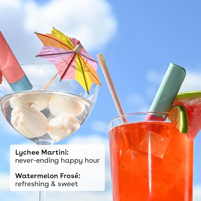 eos 100% Natural Lip Balm Sticks- Watermelon Frosé and Lychee Martini | Dermatologist Recommended for Sensitive Skin | All Day Moisture | 0.14 oz | 2-Pack