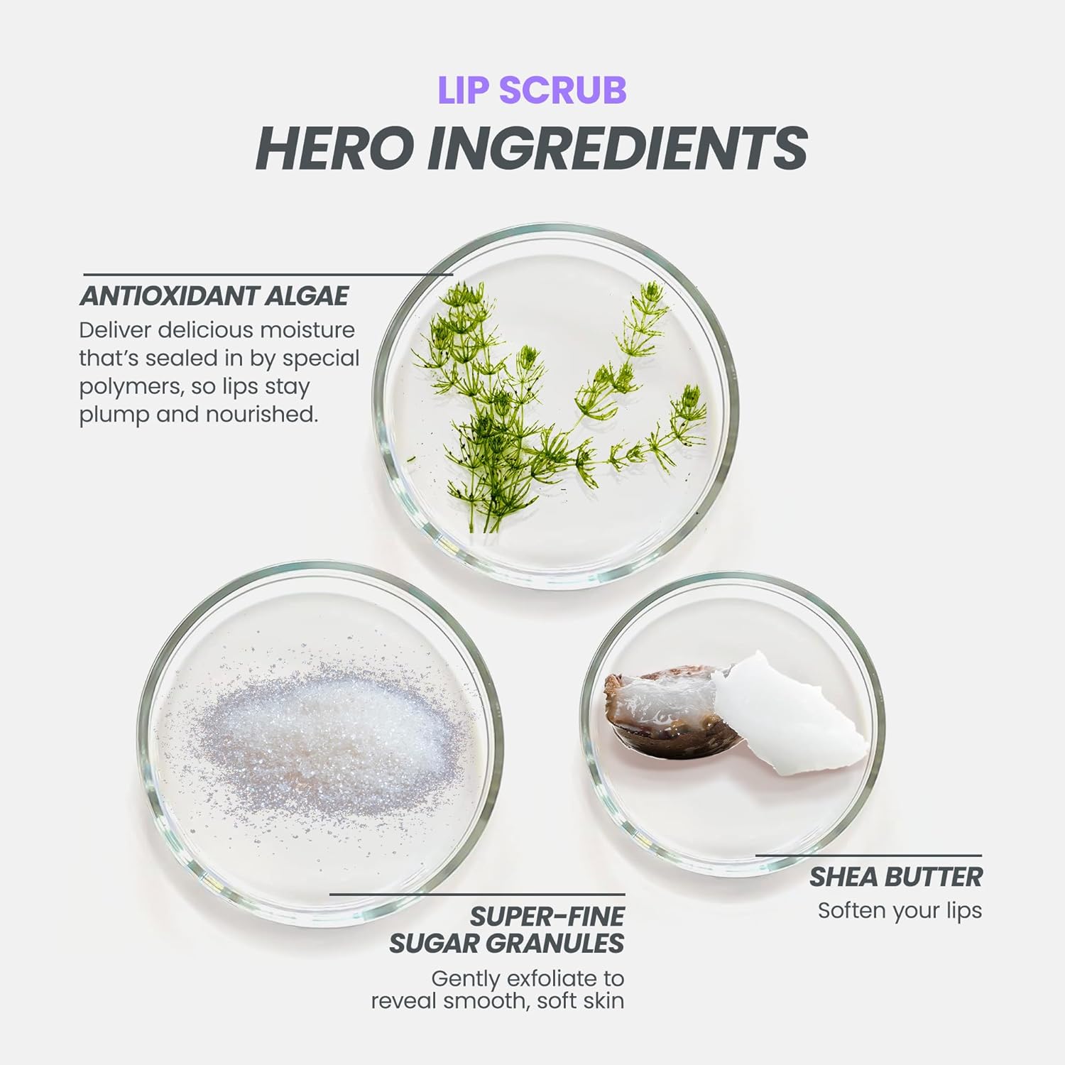 - π π’ππ¦π§π¨π₯ππππ¦ ππππ π ππ₯πππ - The lip scrub's nourishing formula includes Shea Butter and algae, which provide excellent moisturizing properties, making it an excellent lip scrub for dry cracked lips. This lip scrubs exfoliator & moisturizer is designed to provide your lips with the right balance of nutrients, ensuring that your lips are always soft and hydrated.