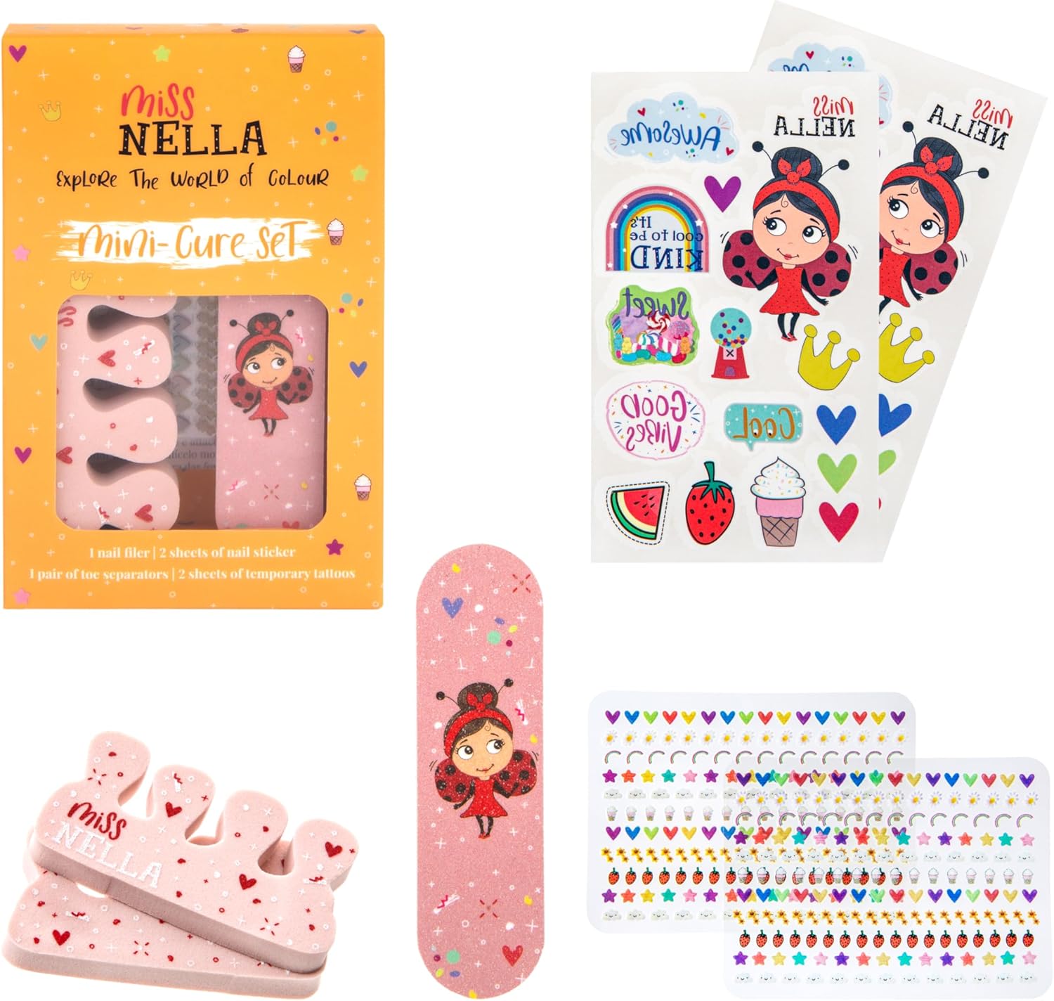 MISS NELLA Kids Makeup & Nail Polish Set for Little Girly Girls, Safe and Fun Gift - Hypoallergenic, Dermatologically Tested Kid-Friendly, Non-Toxic, Cosmetic Bag Included – Special Edition