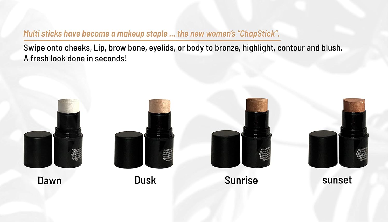 Natural Organic Multi Cream Sticks, Highlighter and Bronzers 100% Natural, Vegan, Gluten Free, Cruelty Free, Made in the USA, 0.18 oz. (Sunset)