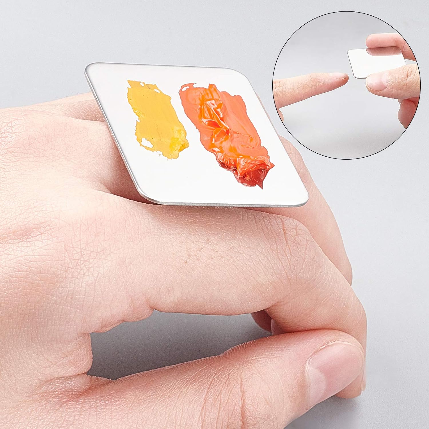 - Package & Size--Here come with 4pcs finger ring palette and 2pcs palette spatulas, palette size about 1.7 x 1.3 inch (4.3x3.3cm), they are small and portable, it’s convenient to take anywhere.