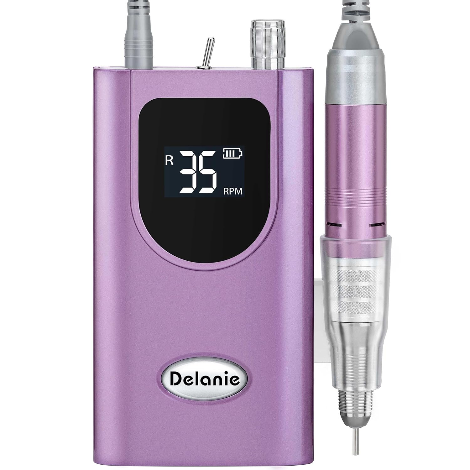 Delanie Professional Portable Electric Nail Drill Machine, 35000 RPM Rechargeable Cordless Nail Filer Electric Nail File Efle for Dip Powder Acrylic Gel Nail, Salon Nail Tool, Violet