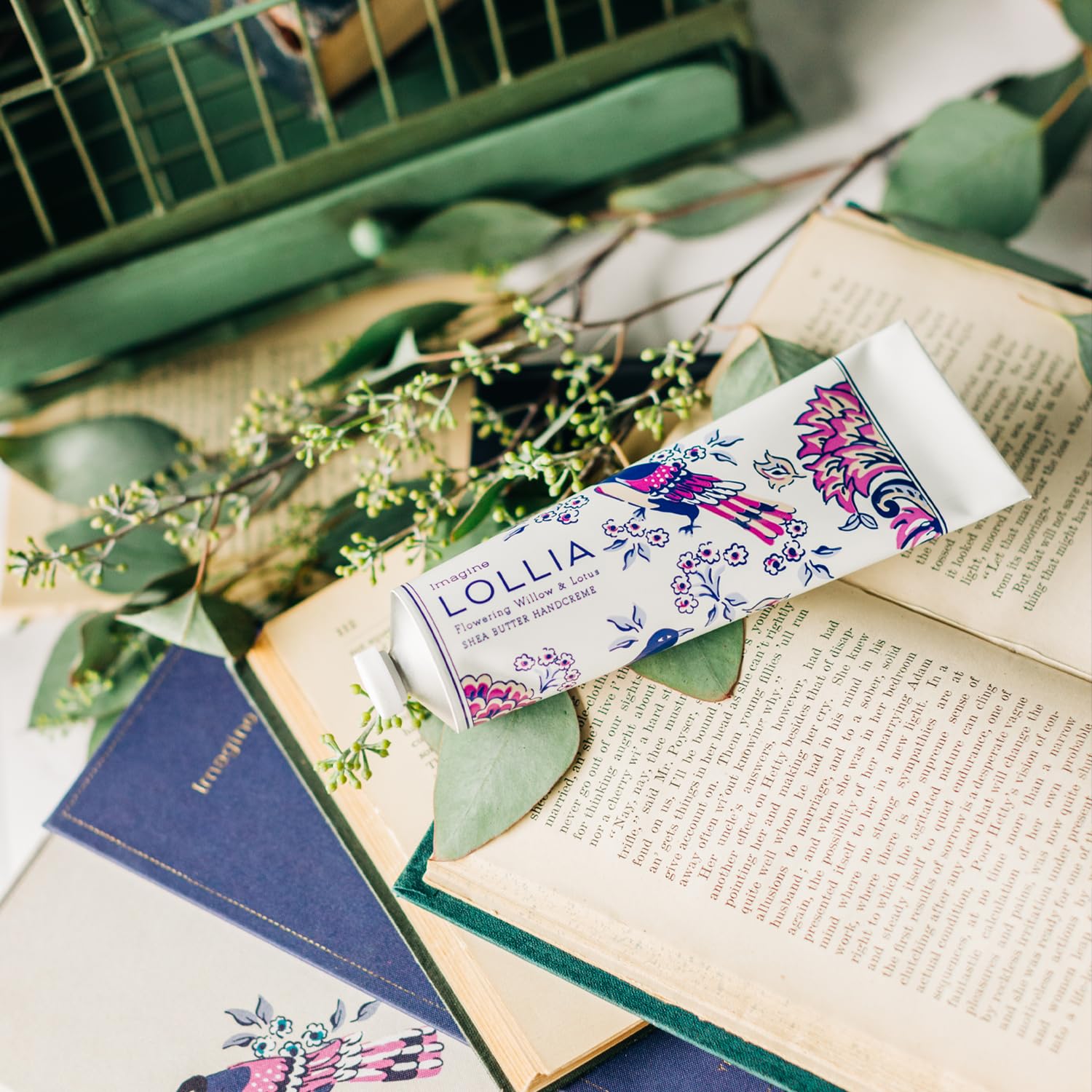 - FLOWERING WILLOW & LOTUS: Lollia Imagine Handcreme moisturizes the skin for beneficial hydration. Flowering willow and lotus mingles with rice flower, coconut milk, dewy Mandarin, and Jasmine petals for a beautiful floral fragrance.