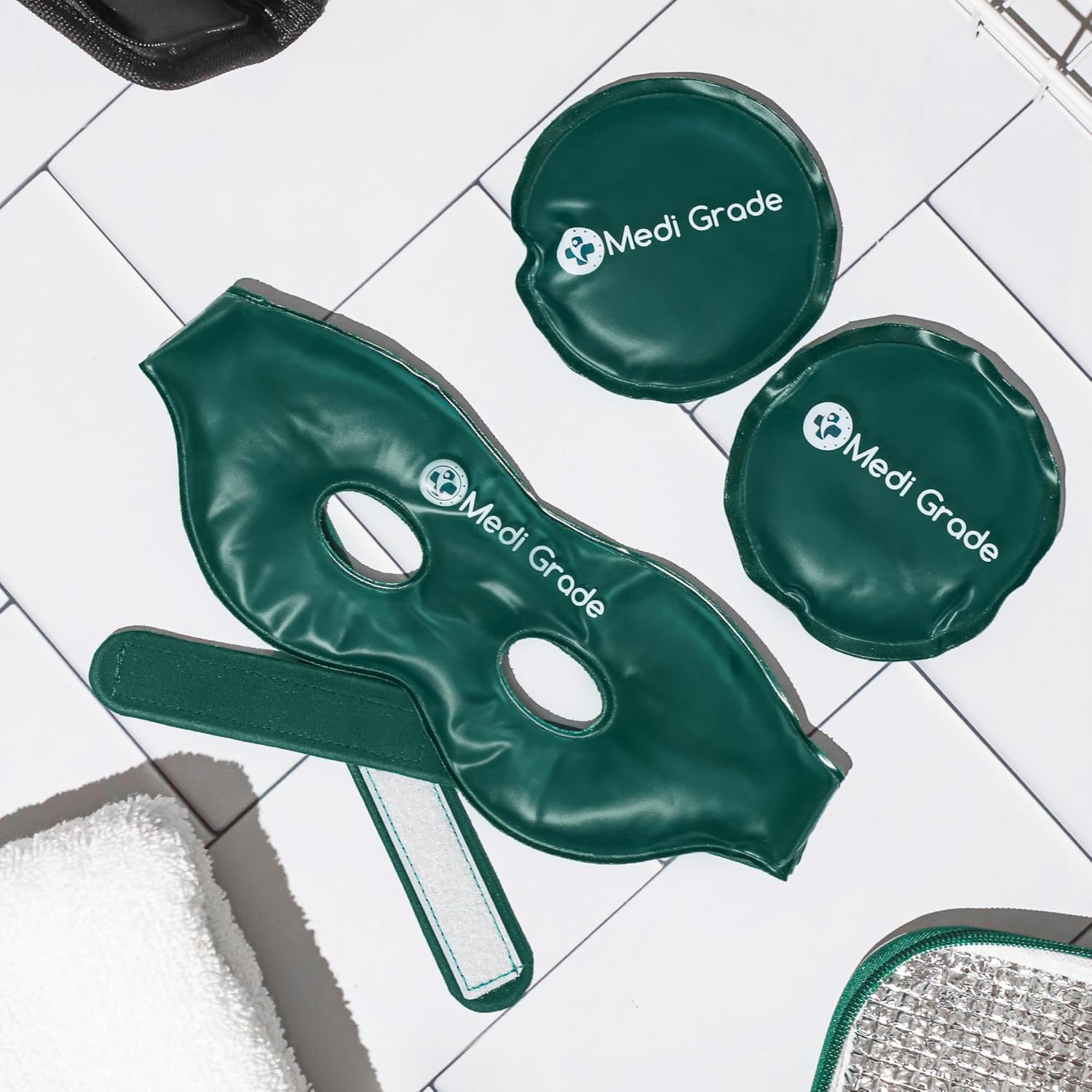Medi Grade Cooling Eye Mask for Puffy Eyes, Allergies, Sinuses - Reusable Gel Eye Mask and Cooling Eye Pads with Thermo-Bag for Dark Circles, Hangovers and Migraine Relief - Cold Eye Mask