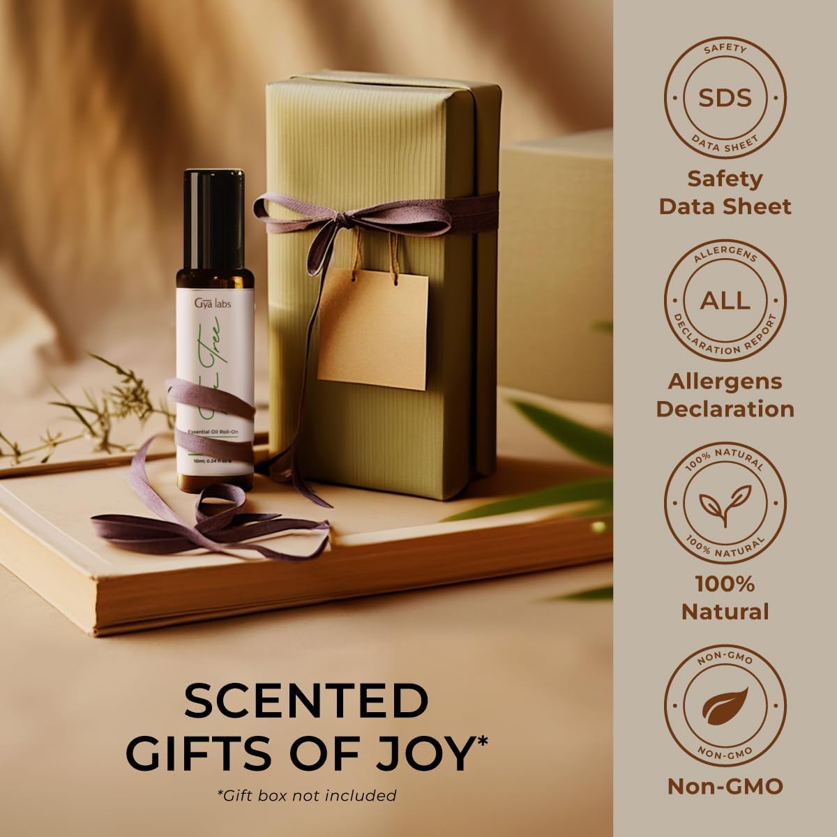 Gya Labs Tea Tree Essential Oil Roll on for Skin, Face & Nails, 100% Pure Natural Australian Melaleuca Tea Tree Oil Roller, Refreshing Aromatherapy, Travel Size (0.34 Fl Oz)