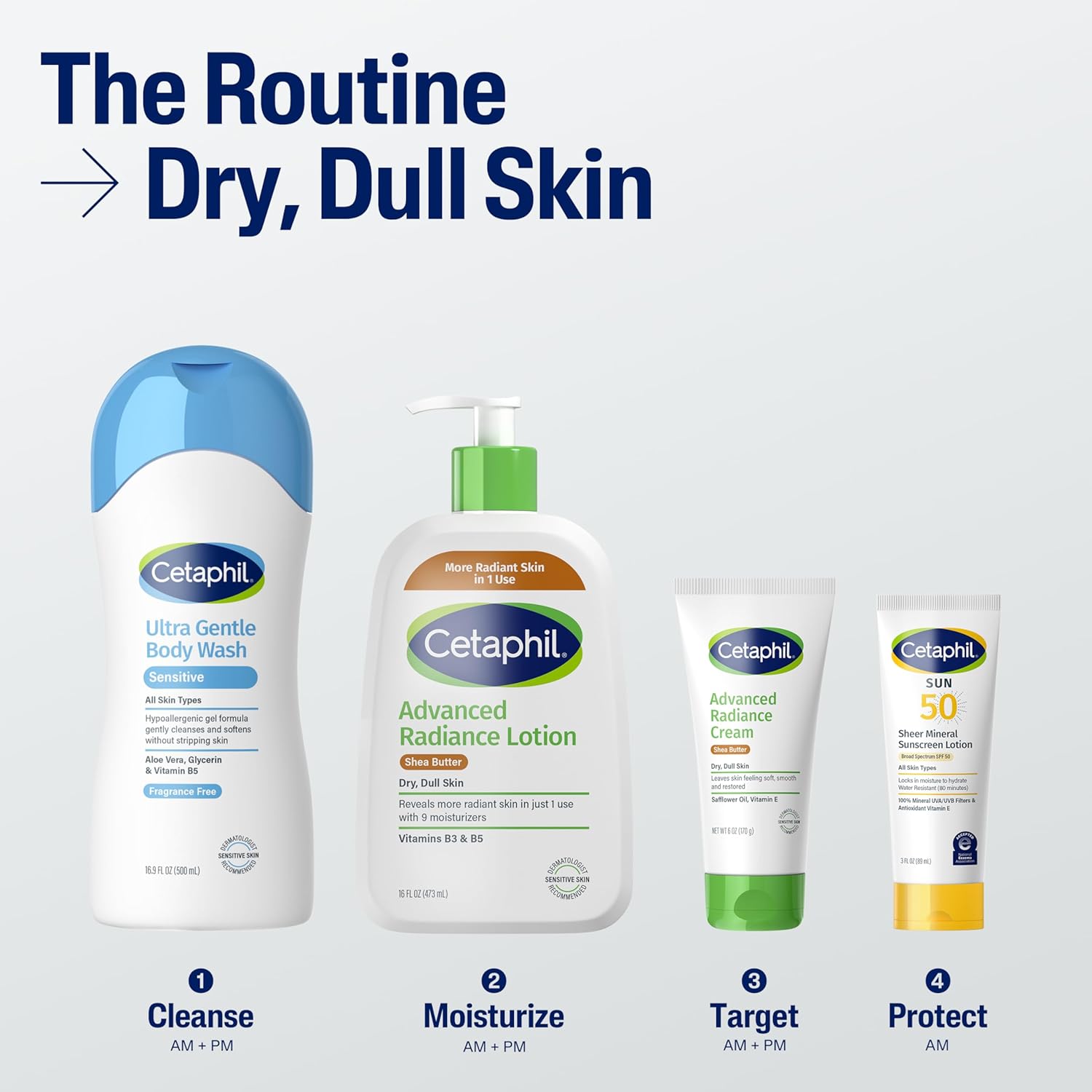 - CETAPHIL ADVANCED RADIANCE FACE & BODY CREAM: Enriched with a high concentration of shea butter to deeply moisturize and nourish skin while helping to prevent visibly dry skin from coming back