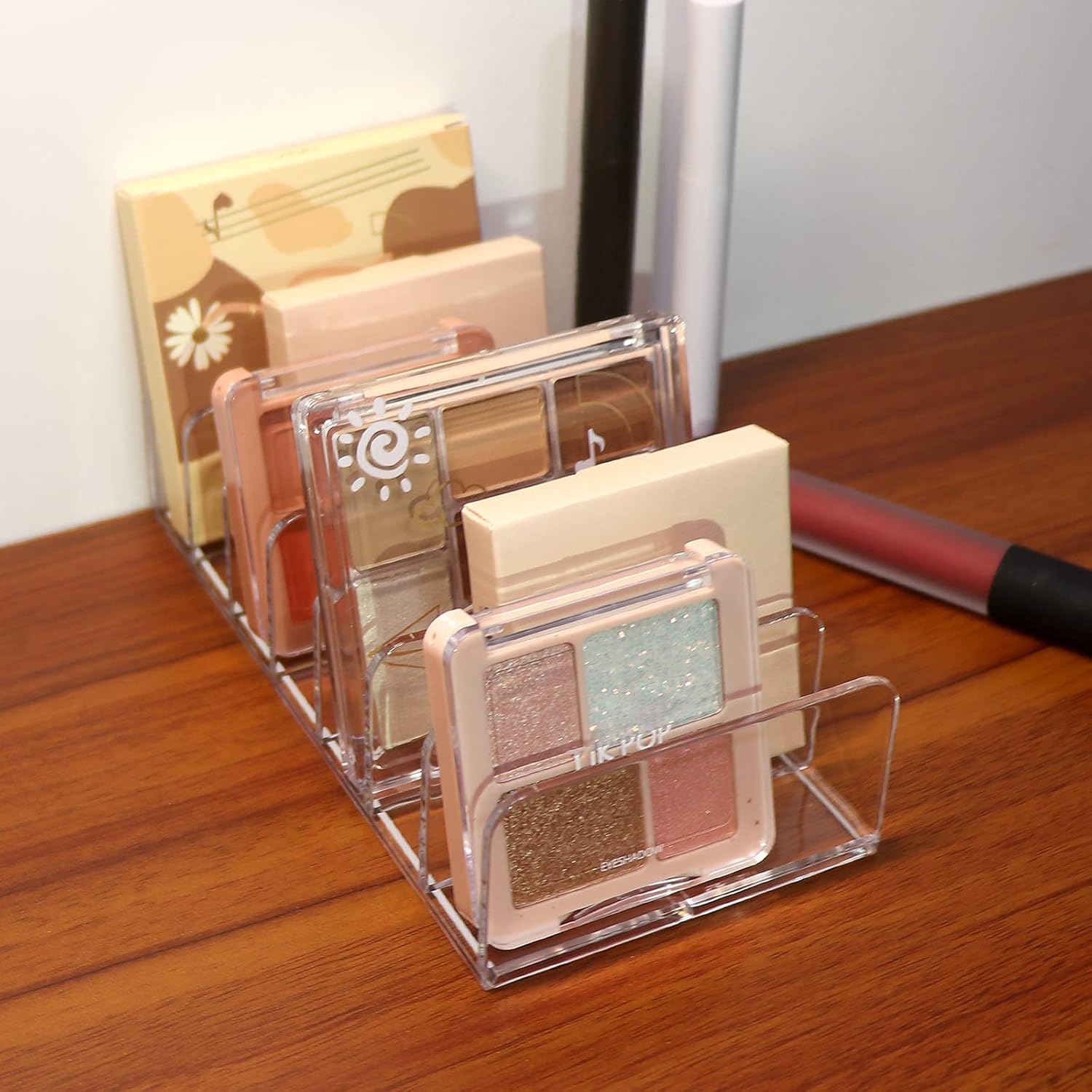 - 【Sits Vertically Or Horizontally】Made for makeup lovers, makeup artists and teenagers, this functional makeup pallet organizer is a great addition to any vanity or bathroom countertops. Designed to stand upright on your counter or lay flat inside your makeup drawer, leaving a smaller footprint.