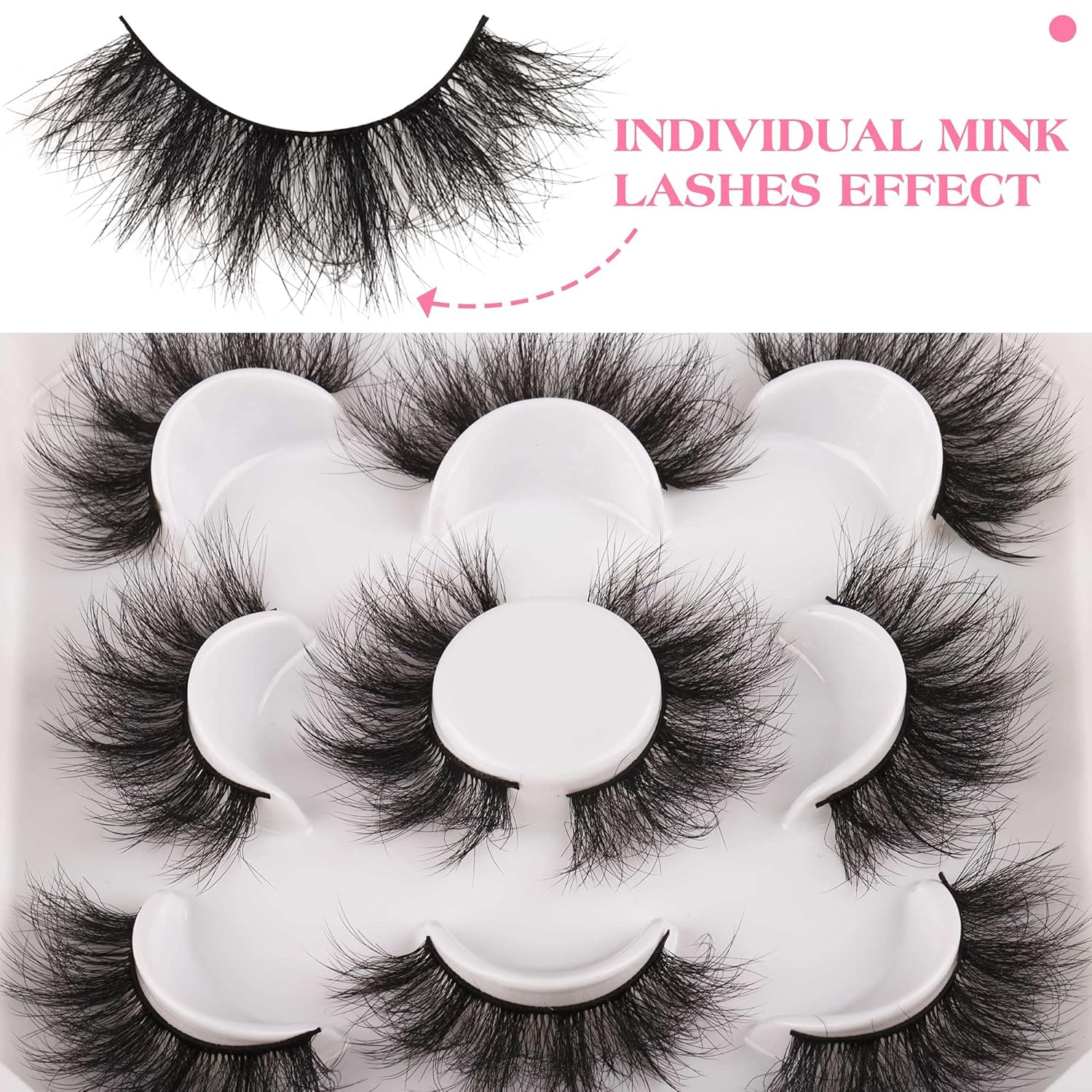 JIMIRE Flare Mink Lashes Fluffy Wispy False Lashes Pack Fluttery 10D Multi-dimensional Volume False Eyelashes 5 Pairs
