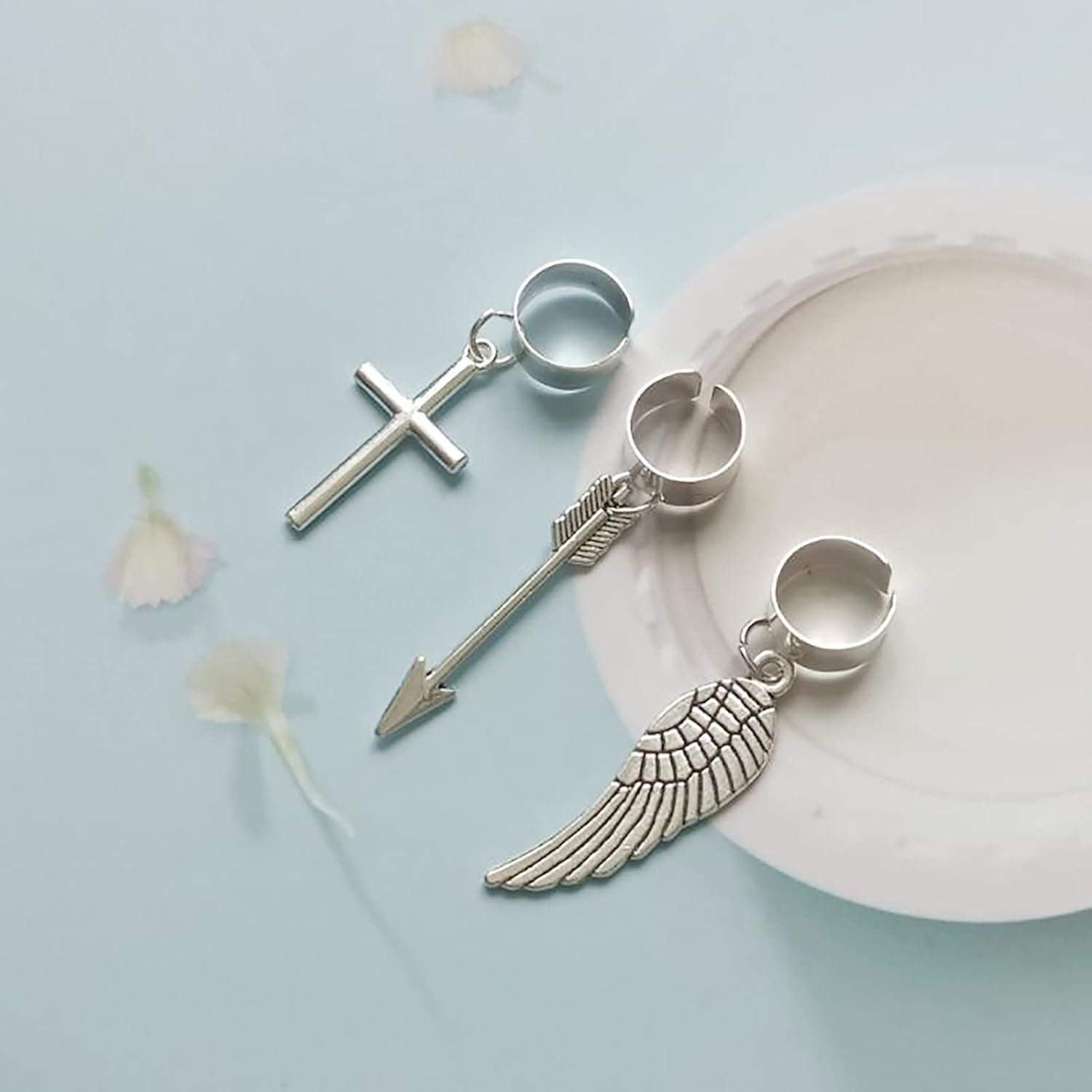 Angel Wings Ear Cuffs 3Pcs Arrow Cross Ear Chain Helix Cartilage Clip Dangle Jewelry for Women Men…
