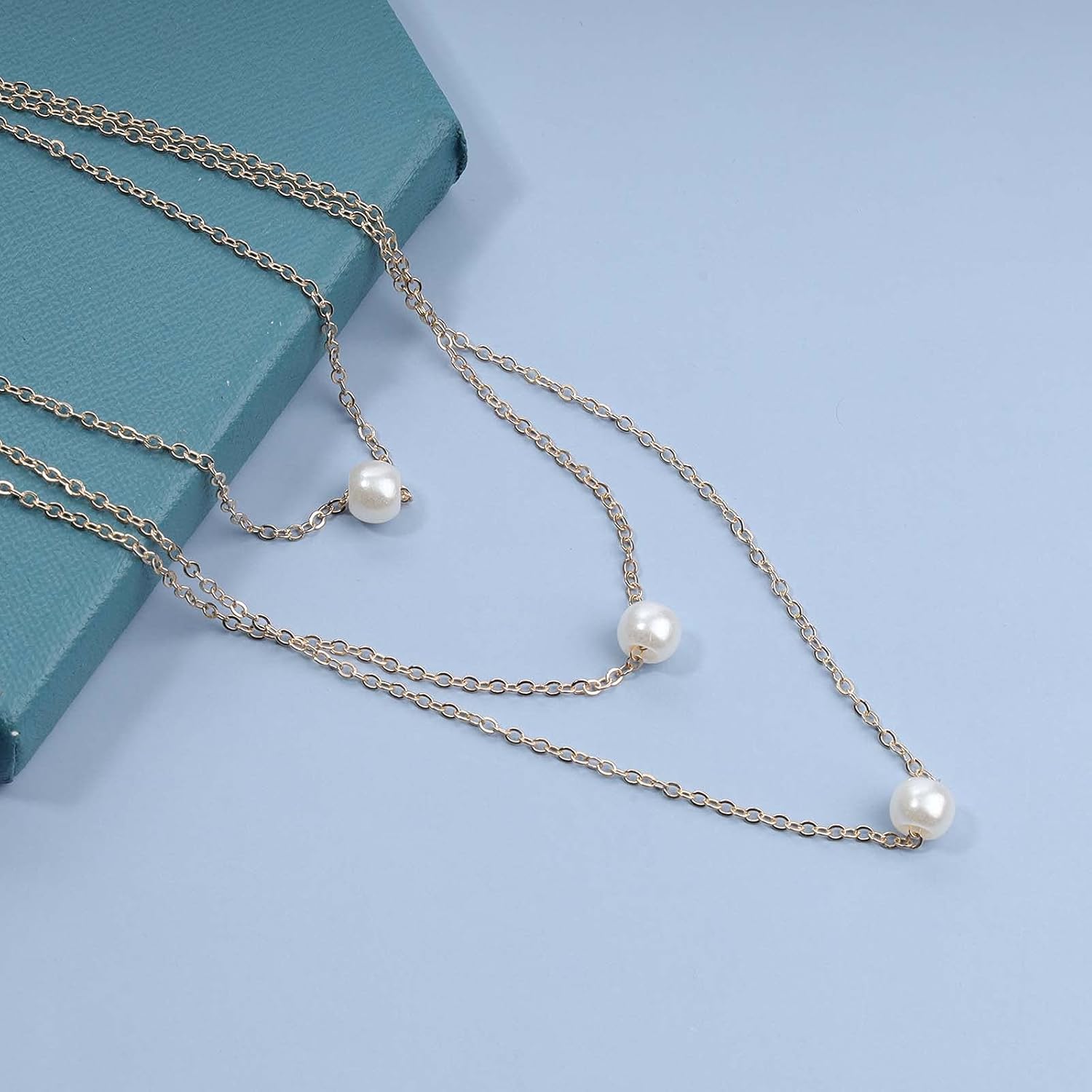 Boho Layered Pearl Necklace Choker Gold Pearl Pendant Necklace Multi Layer Vintage Necklace Chain Bridal Necklace Jewelry for Women and Girls
