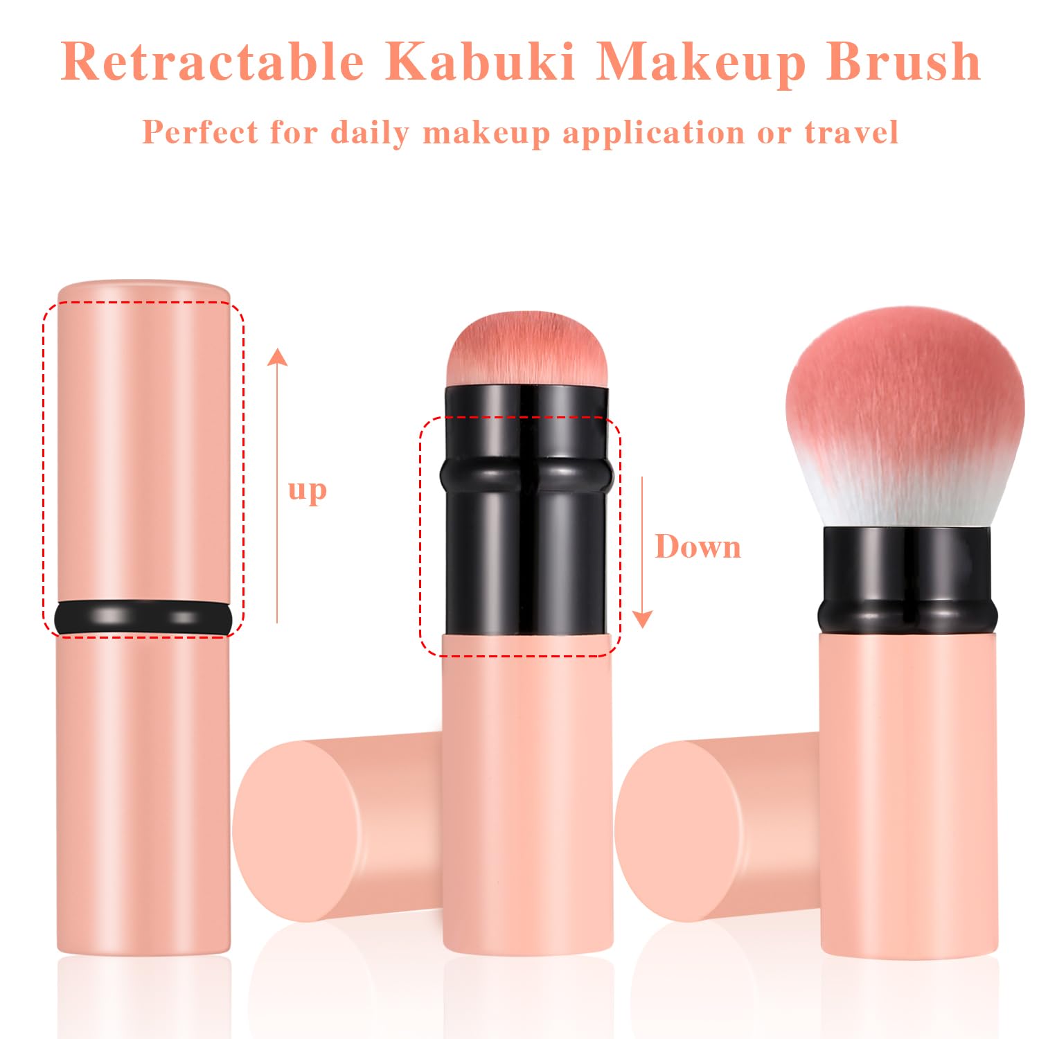 Falliny Retractable Makeup Brush, Travel Powder Brush Face Blush Brush, Portable Kabuki Makeup Brush with Cover for Blush, Sunscreen,Bronzer, Buffing, Flawless Powder Cosmetics