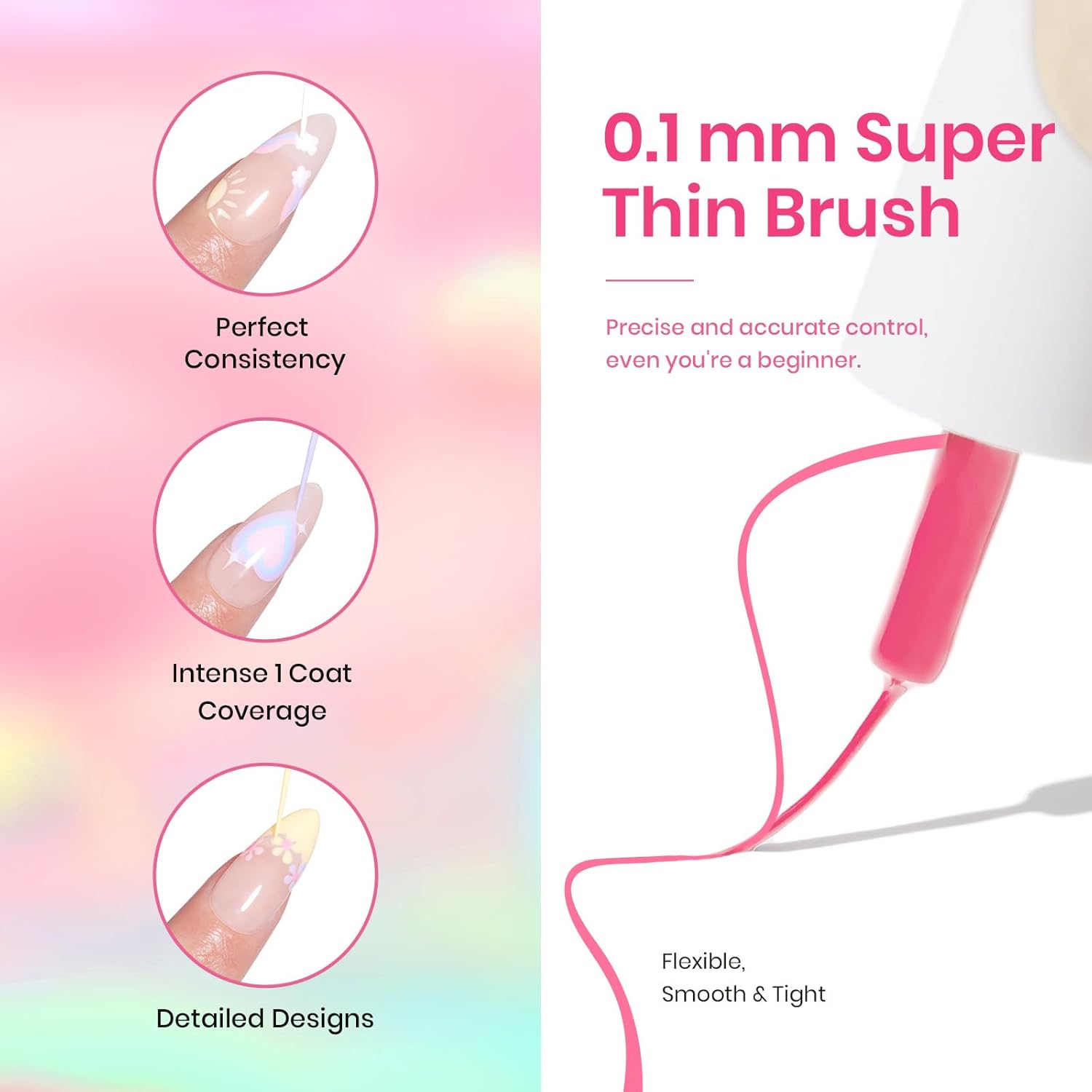- 【Beetles Nail Art Polish Gel Liner Paint Set】: Perfect for those trendy squiggly lines abstract painting that is so popular now.also works perfectly for adding a French line! With the built thin brushes in, you don't have to get out your set of brushes for adding details and lines.