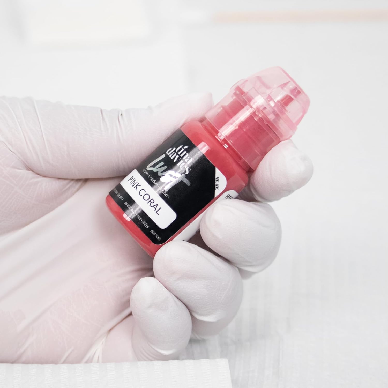 Tina Davies Professional Envy & Lust Lip Pigments - Permanent Lip Makeup - Colors Heal True to Tone - High Retention - Lust Pink Coral, 1/2oz/15ml Bottle