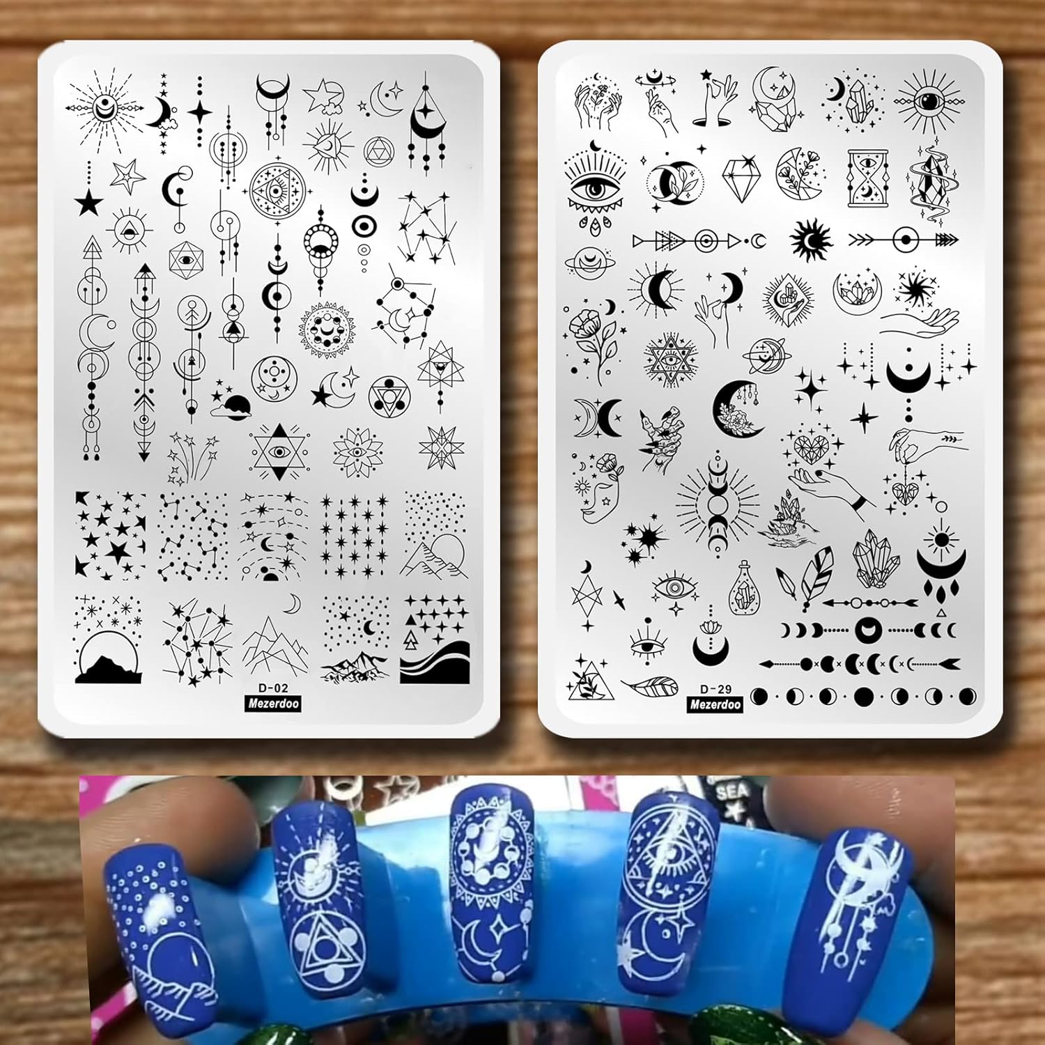 - BRILLIANT NIGHT SKY THEME NAIL STAMPING PLATES: Kinds Of Sun Moon Star Patterns Provide A Mysterious And Beautiful Picture. Each Template Contains A Lot Of Designs And Offers You Multiple Choices To Create Proper Style And Make Your Nail More Attractive