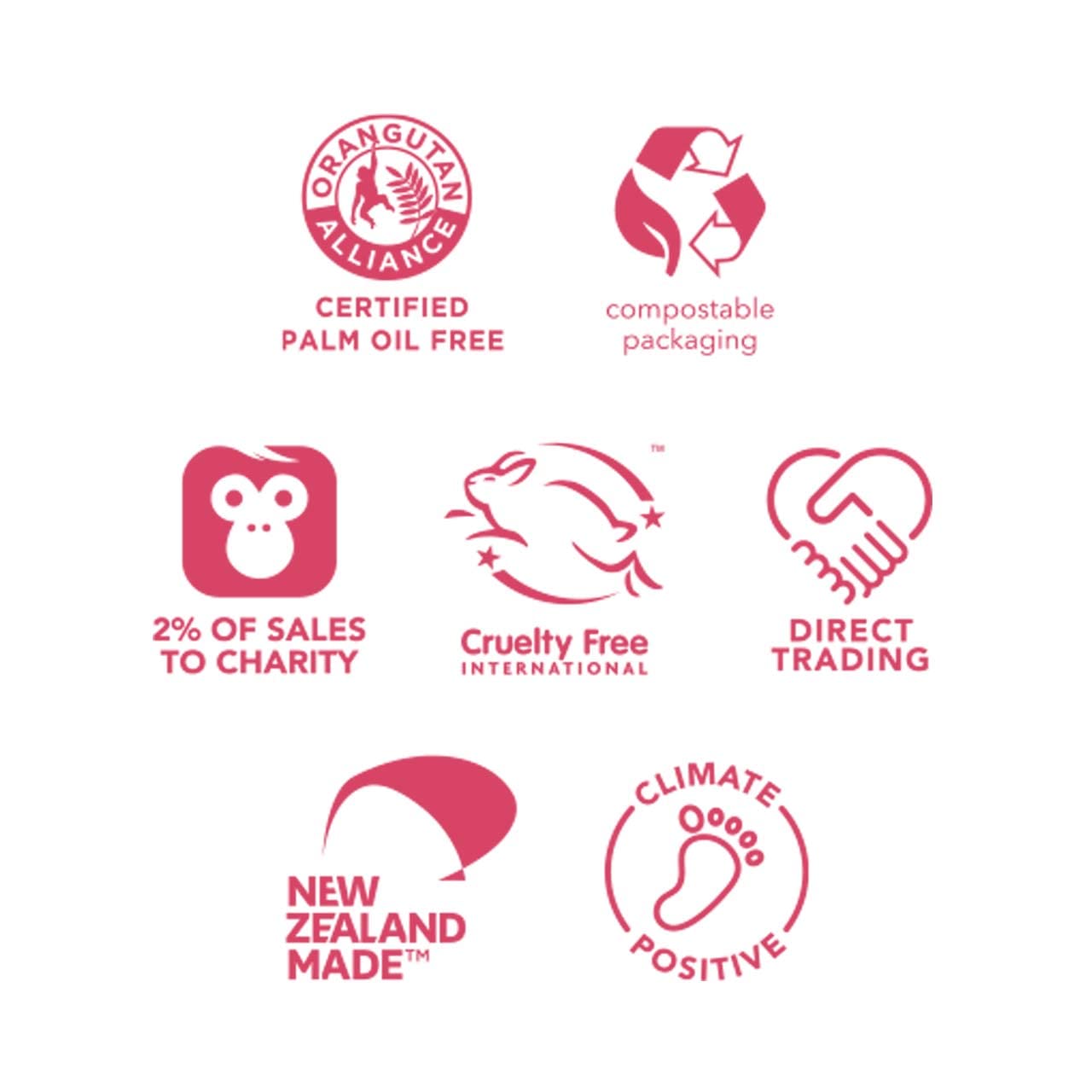 - Ethical & Sustainable Ingredients: Formulated using vegan, cruelty-free, palm oil-free, paraben-free and renewable ingredients, sourced from sustainable producers paid a fair wage.