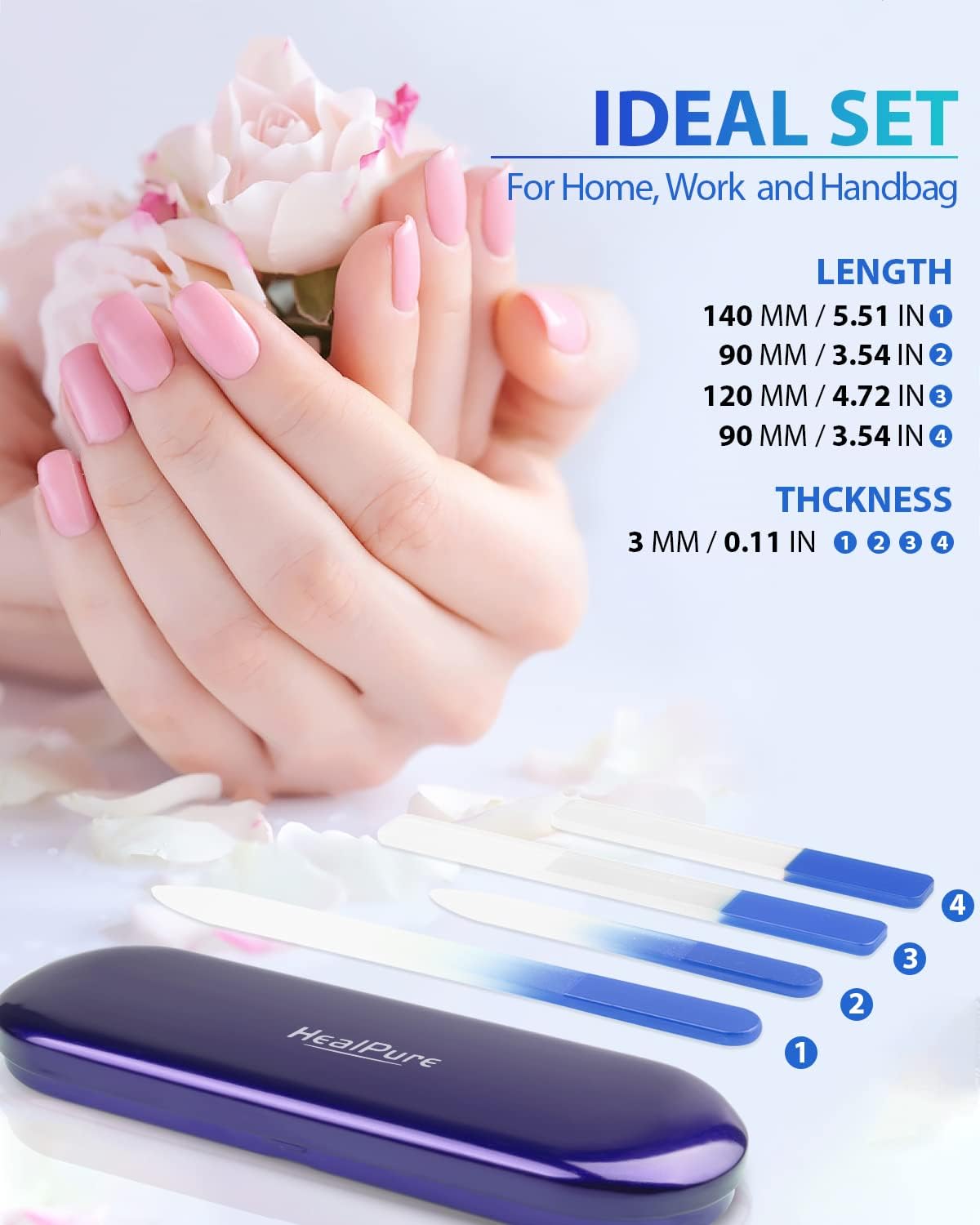 - 【Ideal Nail Manicure Tool】: 2PC tempered glass nail buffer files and 2PC nano glass nail shiners, not only shape nails, but also polish natural nails. Perfect for all types of nails: fingernails, toenails, acrylic nails and natural nails. Suitable for home DIY and salon.