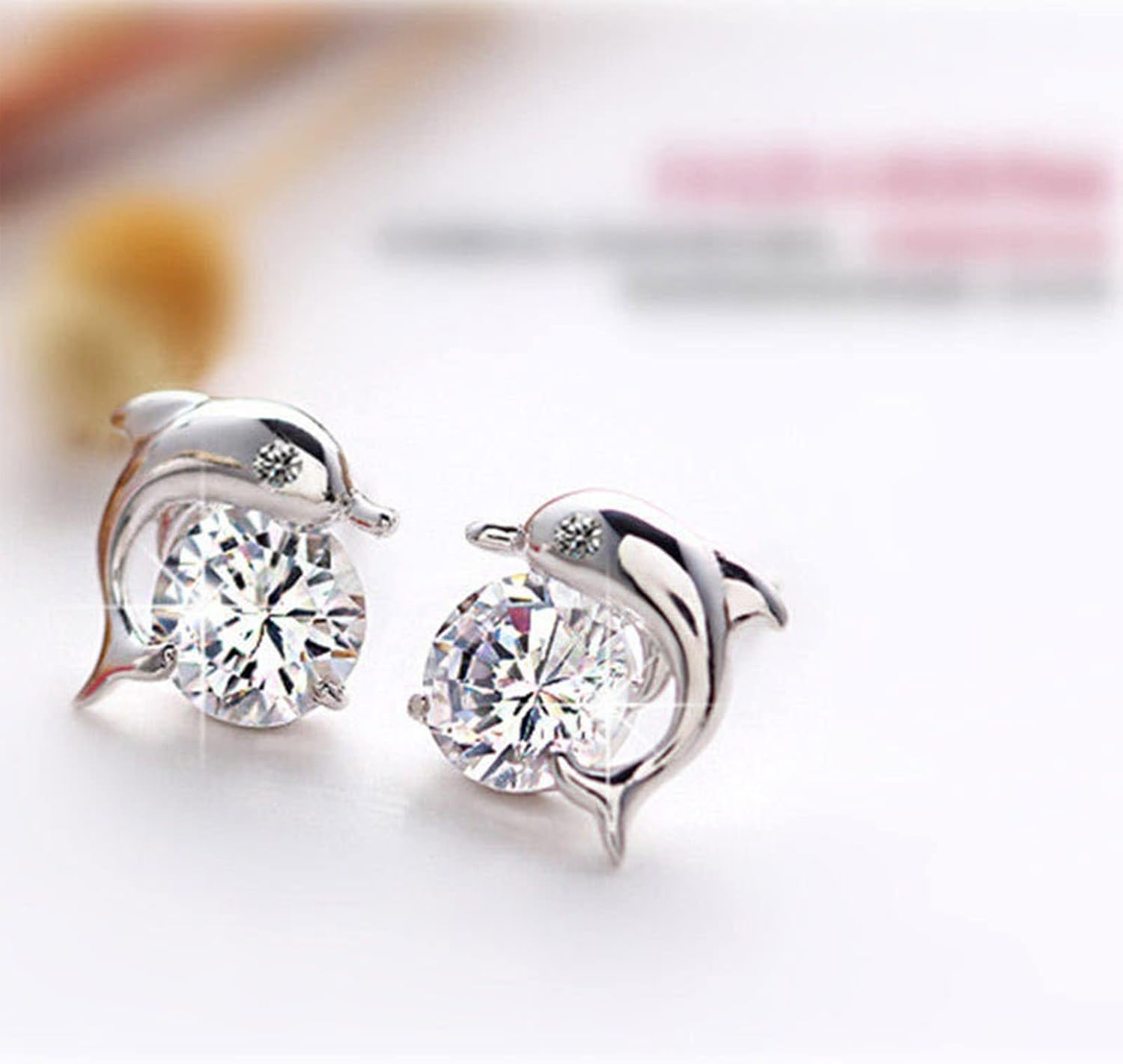 Silver Dolphin CZ Earrings Cute Animal Stud Earrings Tiny Earring Jackets Gifts for Women and Girls