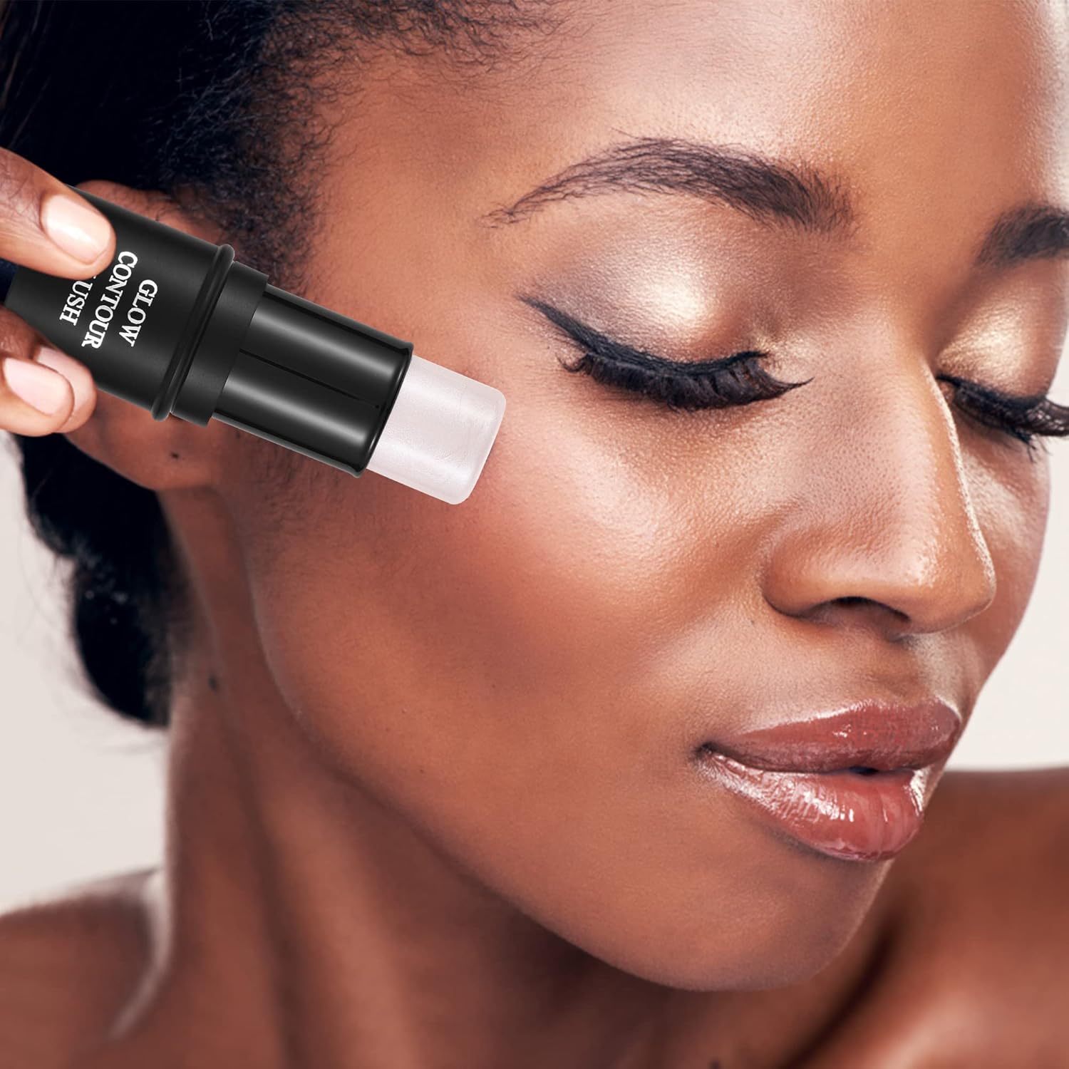 Contour Stick Highlighter Stick Makeup for Face Bronzer Stick Pen Shimmer Makeup Cream Contour Makeup Kit Light Face Cosmetics Stick Creamy Self Sharpening Crayon (2 Pack)