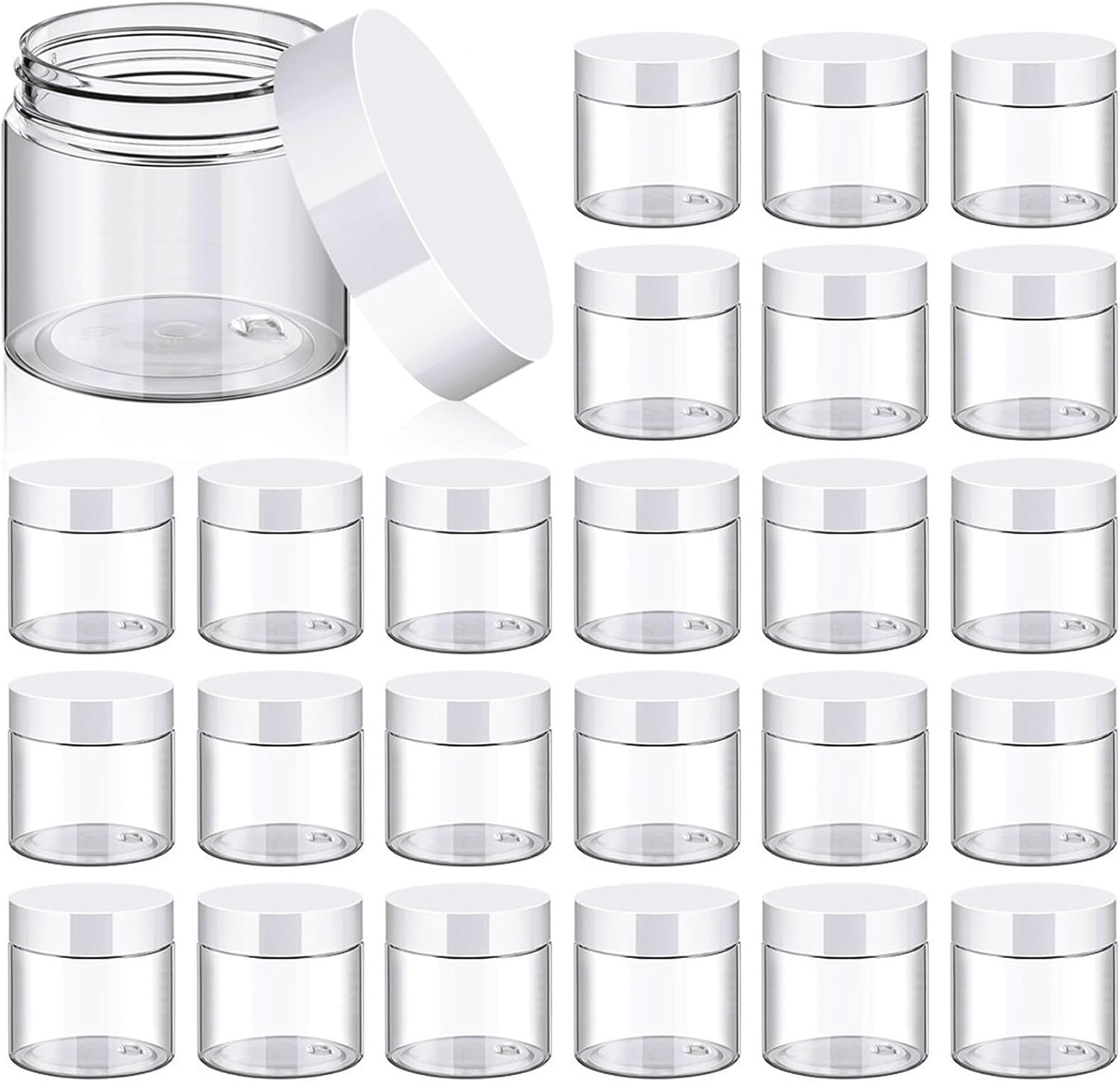 TUZAZO 24 Pack 2 Oz Small Plastic Container Jars with Lids and Labels BPA Free, Empty Round Clear Cosmetic Containers Plastic Slime Jars for Lotion, Cream, Ointments, Samples, Travel Storage (24)