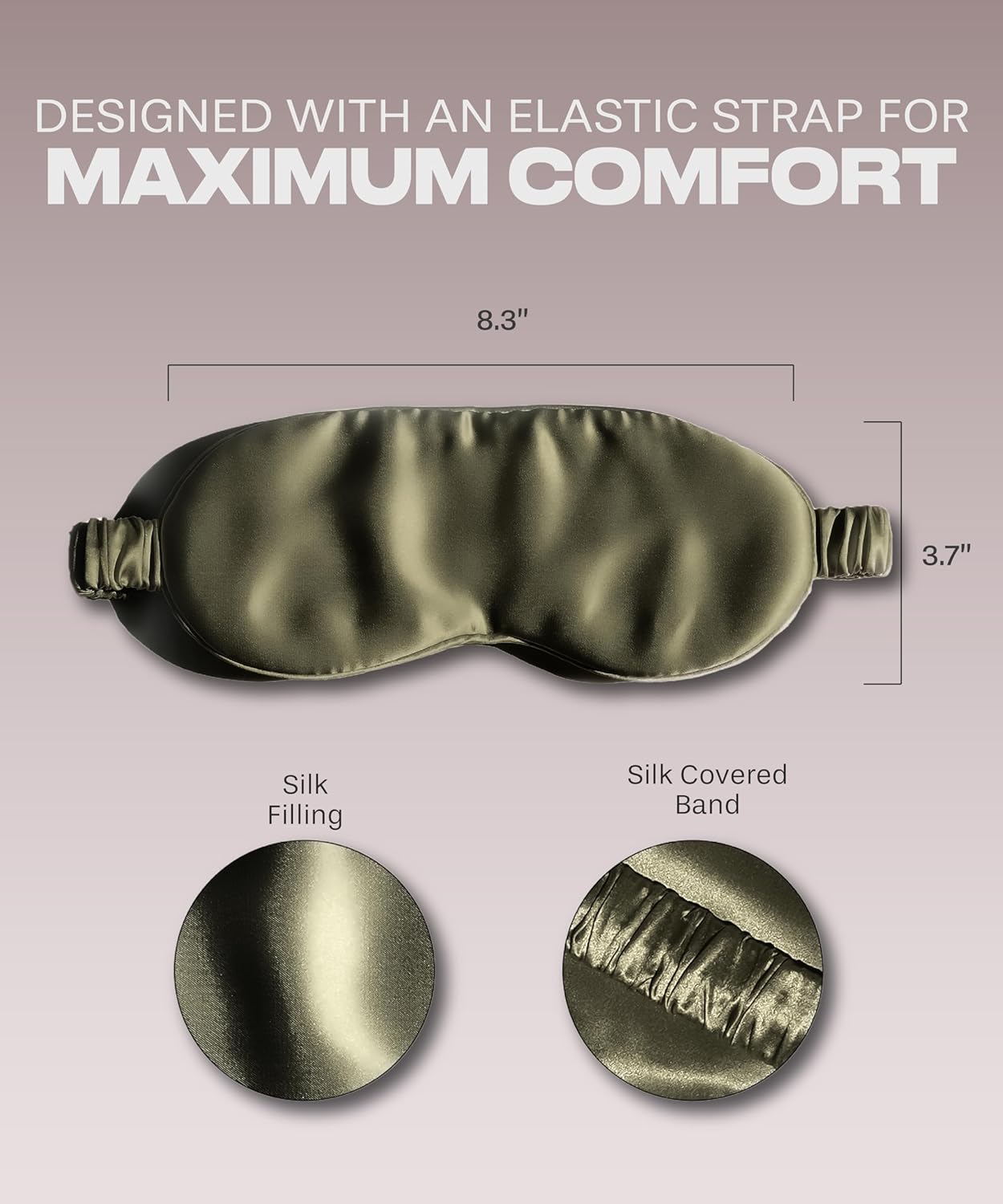SUNDAYSILKS™ Exclusive Mulberry Silk Sleep Mask | Soft Eye Covers, Blackout Sleeping Mask for Women & Men | Silk Eye Mask for Sleep, Travel, and Relaxation | Antifaz para Dormir [Olive]